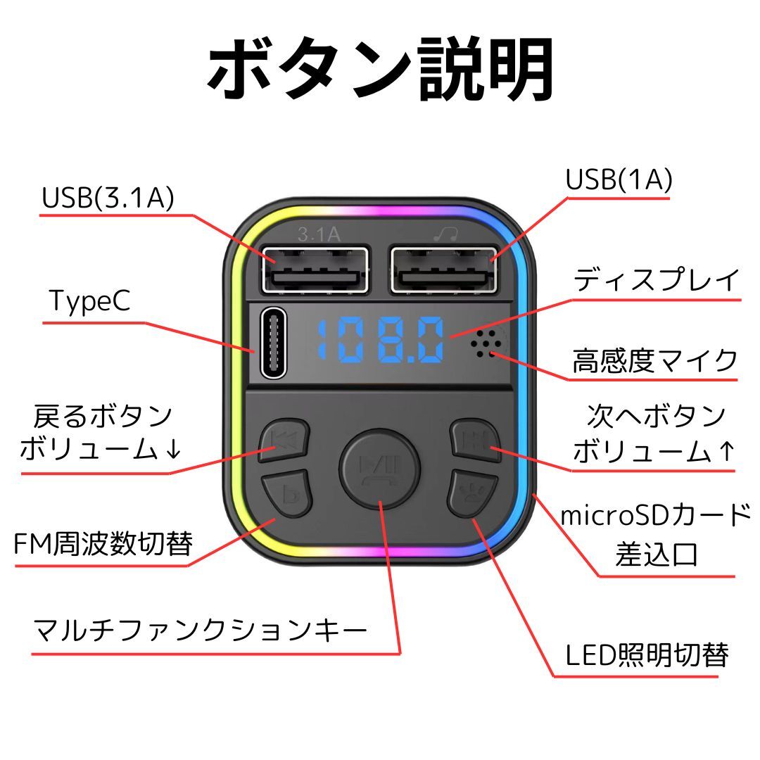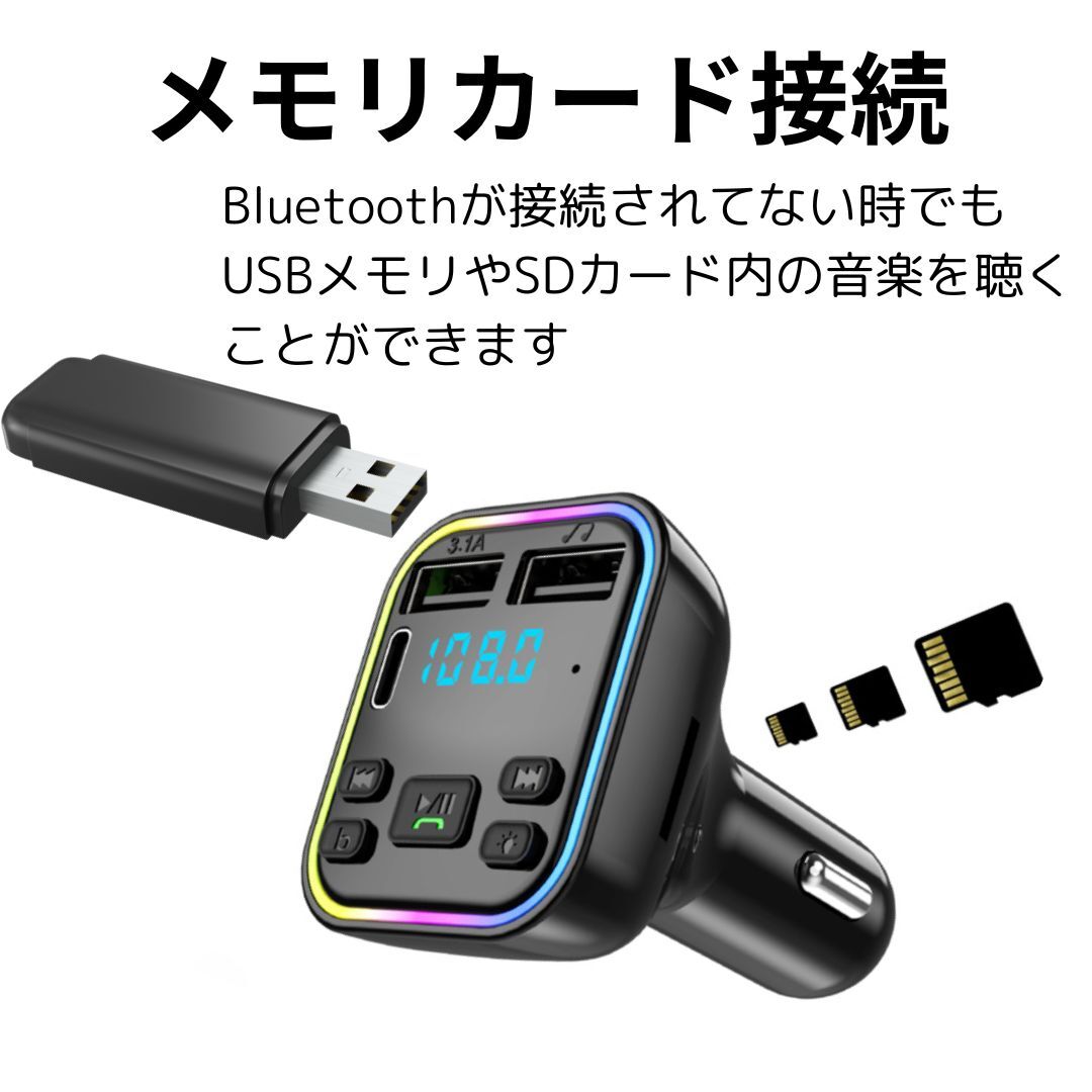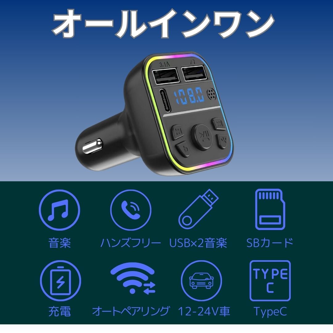 FMトランスミッター 音楽再生 ハンズフリー通話 Bluetooth 5.4 Type-c USB MP3 急速充電 シガーソケット スマホ充電 FM USB充電 iPhone 收藏