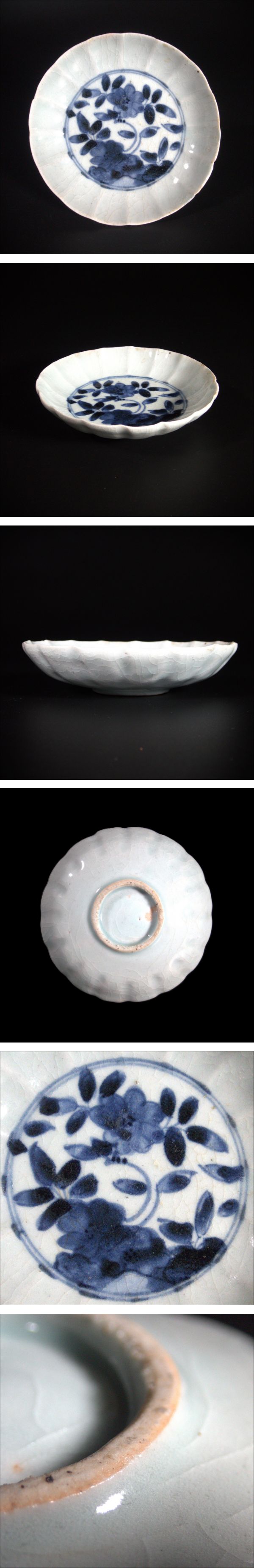 ■ 商品説明 期伊万里らしい、やや深みのある形をした輪花小皿です。 見込みには花文が伸びやかに描かれ、呉須の濃淡が美しく表れています。 縁の立ち上がりや高台のつくりにも初期伊万里特有の風合いが感じられます。 |