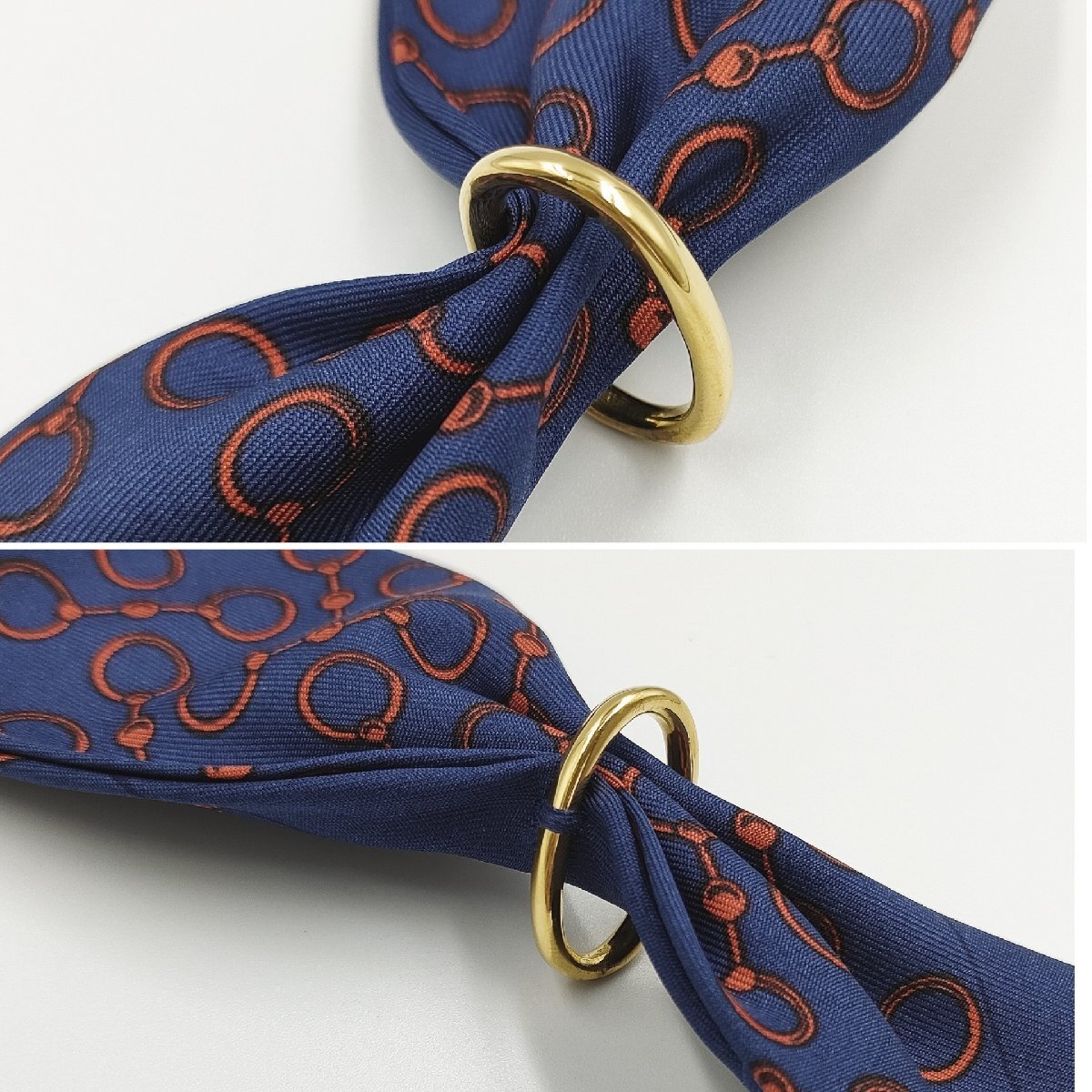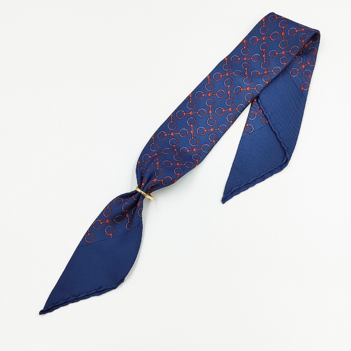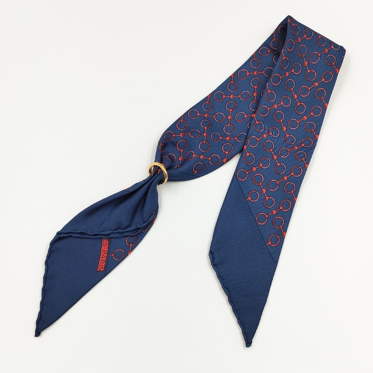 S2438●送料198円~ 訳あり HERMES エルメス スカーフ スカーフリング付き ネイビー系 プチカレ カレ45 收藏