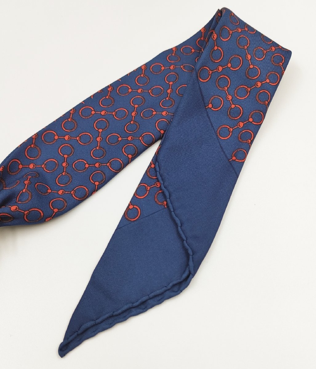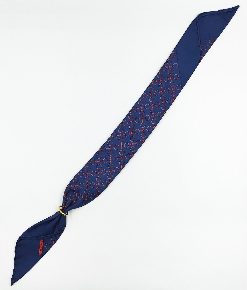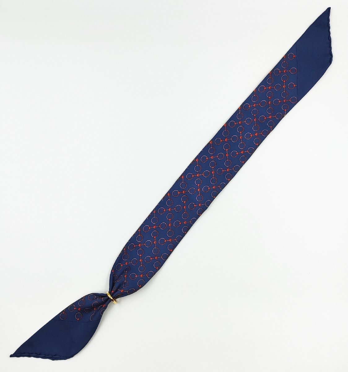 S2438●送料198円~ 訳あり HERMES エルメス スカーフ スカーフリング付き ネイビー系 プチカレ カレ45 收藏