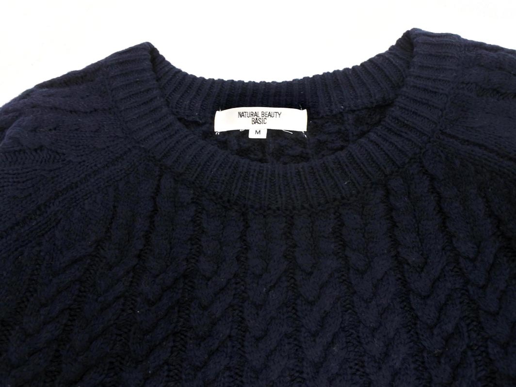 NATURAL BEAUTY BASIC ナチュラルビューティーベーシック ウール混 ケーブル編み ニット セーター sizeM/紺 ◇■ ☆ fjb4 レディース 收藏