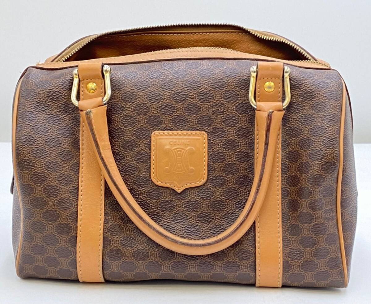 CELINE セリーヌ マカダム ミニボストンバッグ PVC ブラウン 收藏