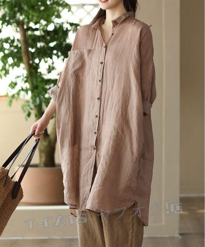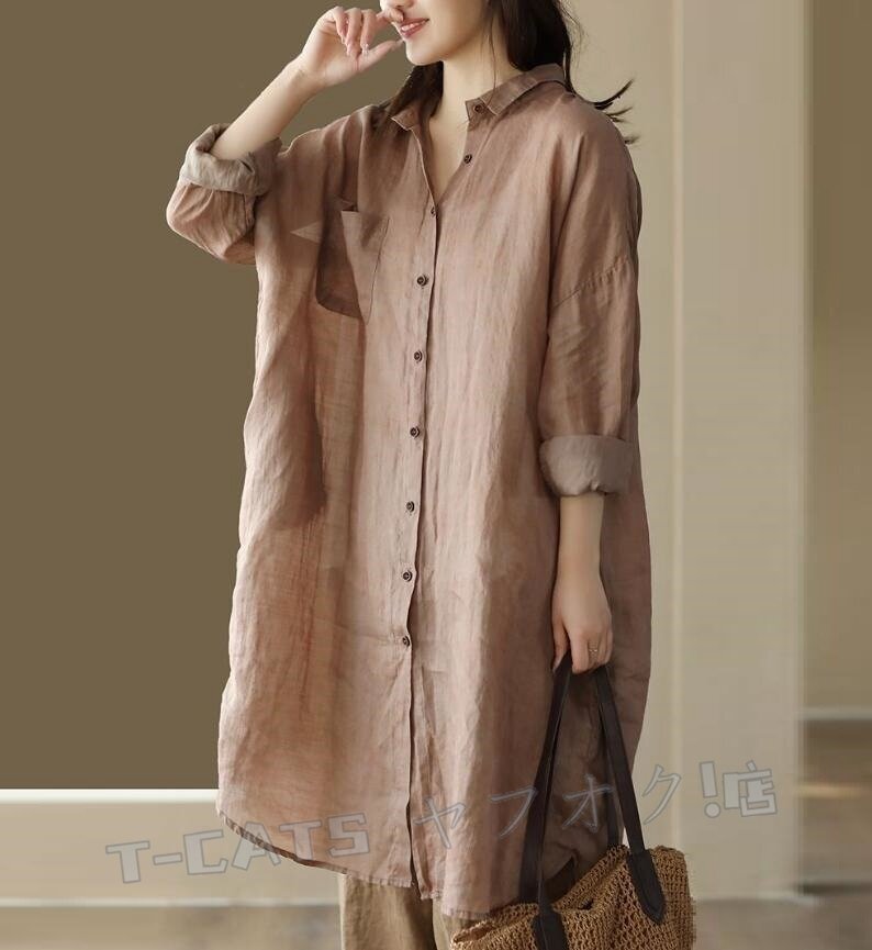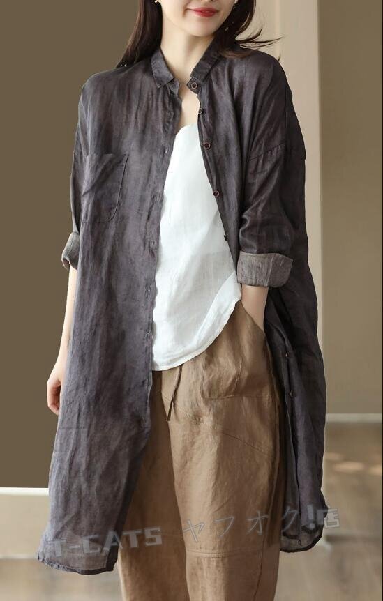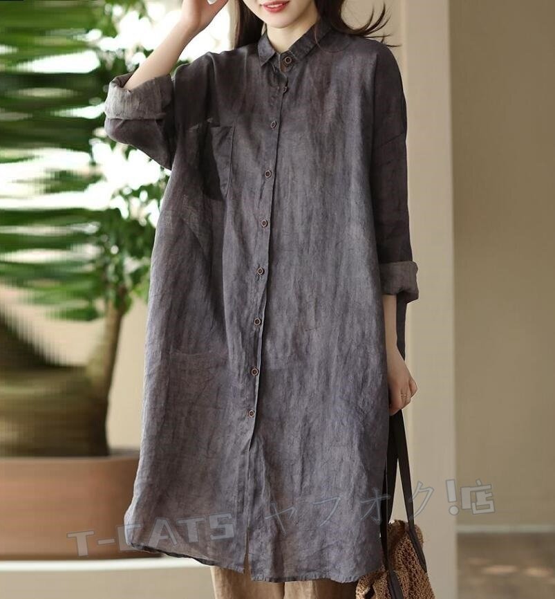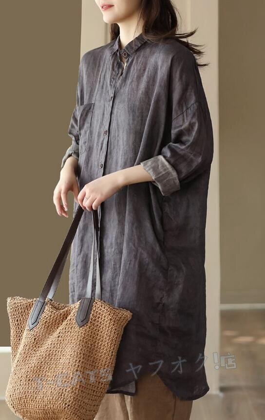 ☆新品チュニック 長袖 ロングシャツ レディース シャツ トップス プリント ブラウス 大きいサイズ ゆったり きれいめ グレー 收藏