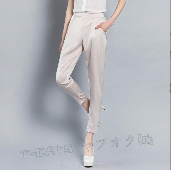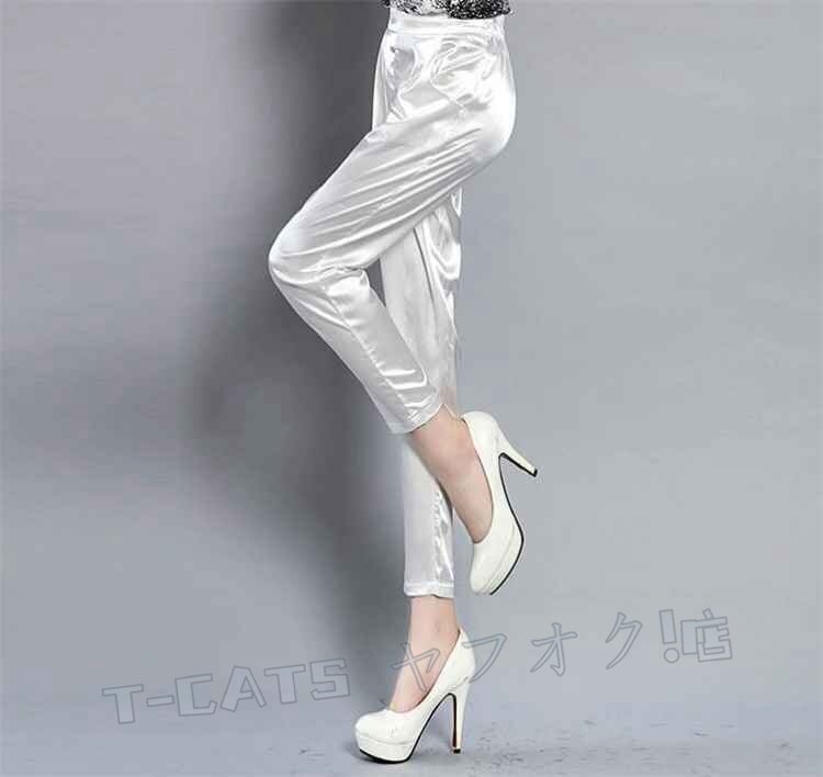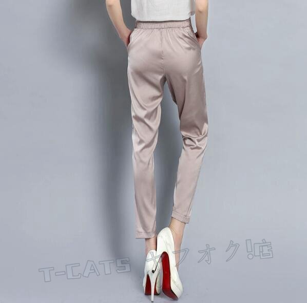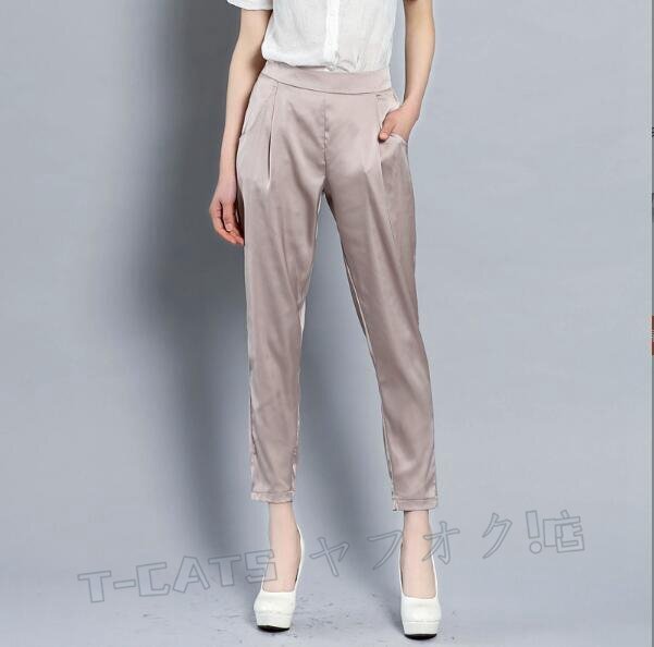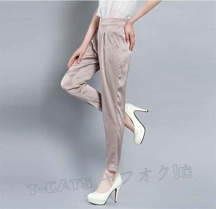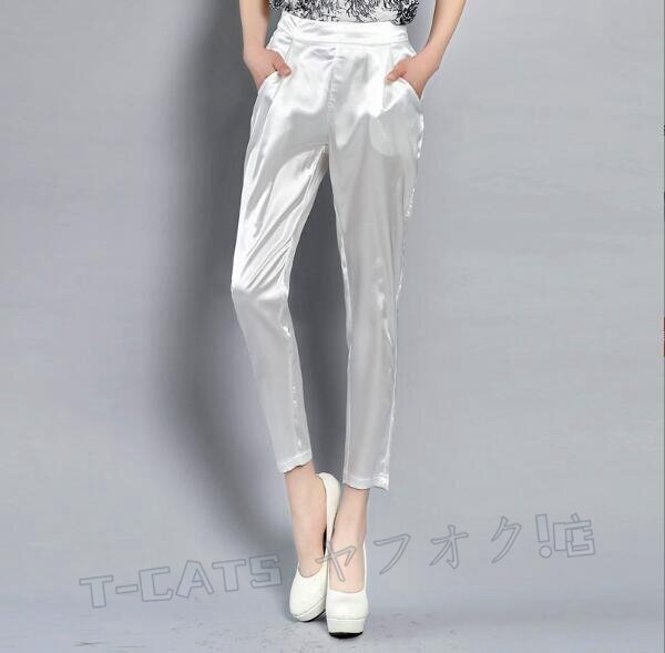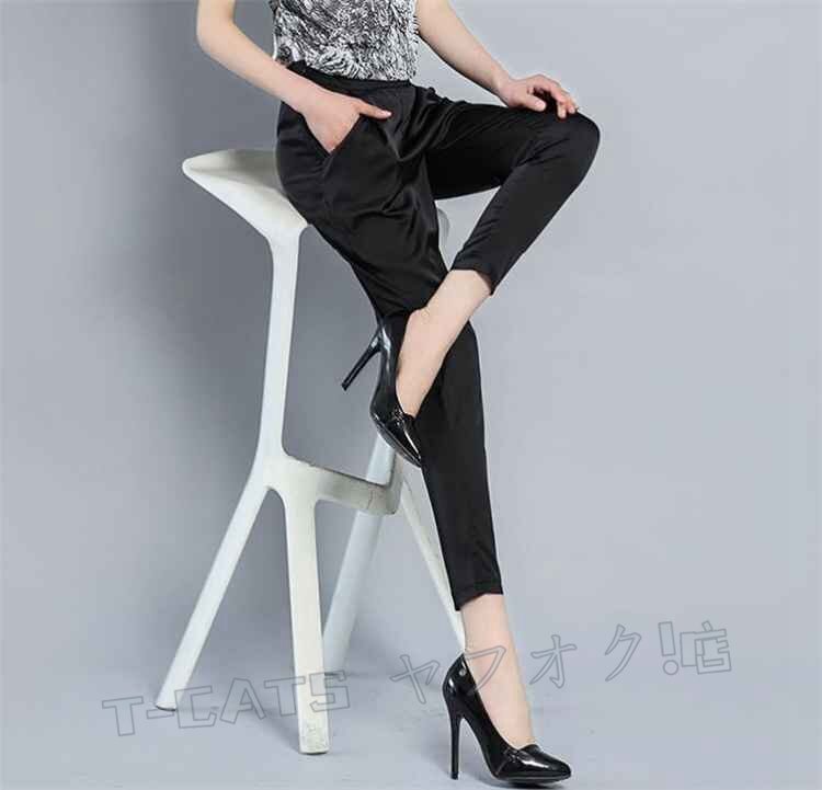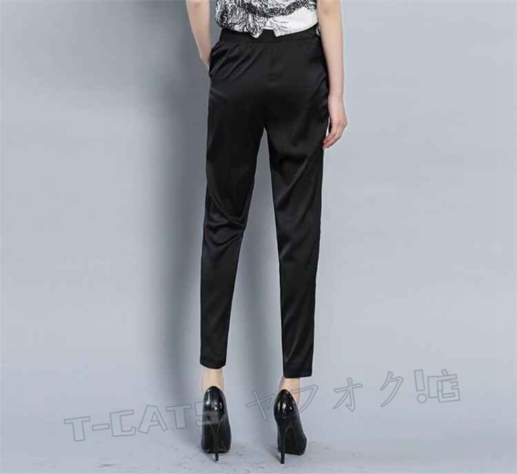 ☆新品 M-4XLサイズ大きいサイズ サテン テーパードパンツ ストレッチ L ブラック お色選択可 收藏