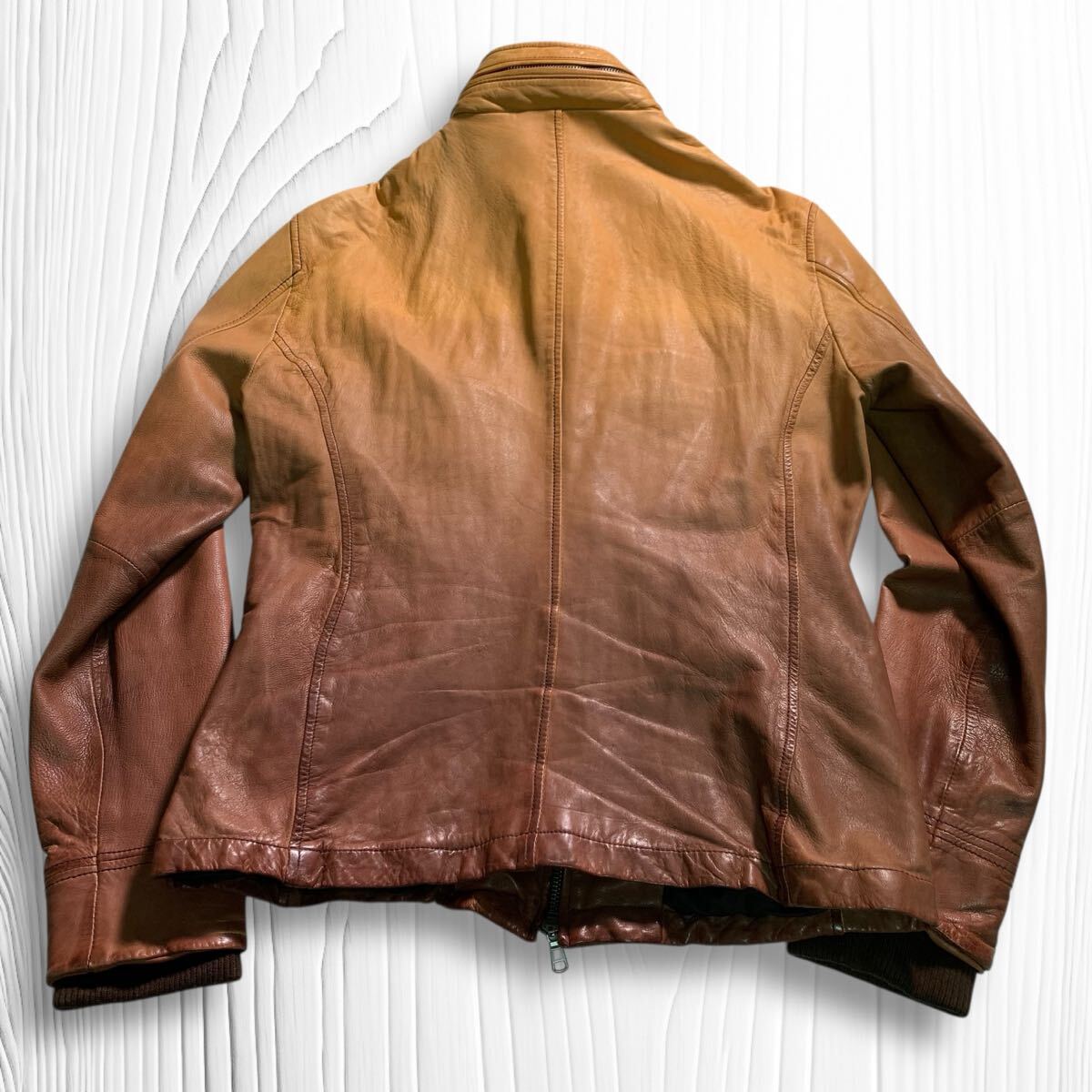羊革製のブラウンレザージャケット、細身のライダーススタイルで、内側は黒色の布地仕立て。| 出价者 | 信用 | 价格 | 时间 |