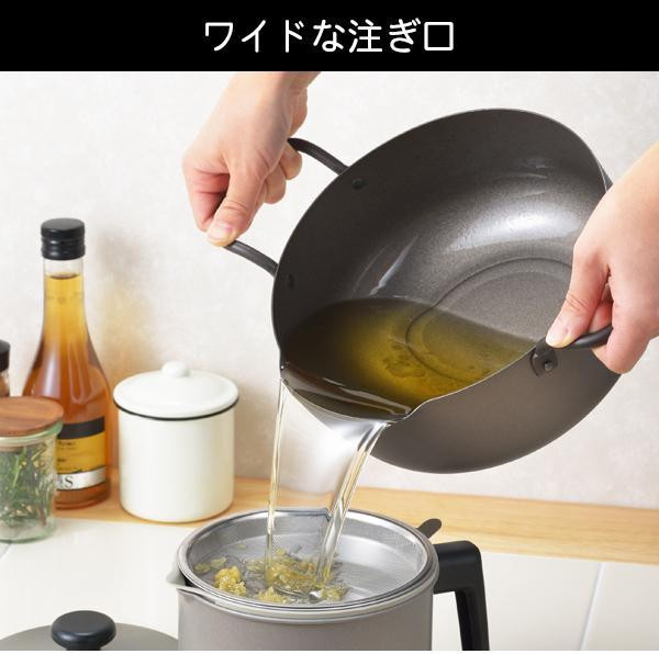 | ガス火・IH両対応の天ぷら鍋。注ぎ口がワイドなので油の移し替えをラクに行えます。 |