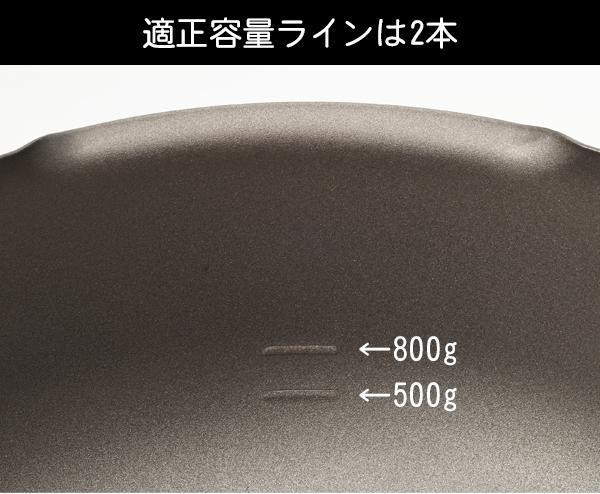 | 仕様 | 満水容量:3.3L 適正容量/上線:800g、下線:500g 対応熱源:ガス火、IH 食器洗浄機使用不可 |