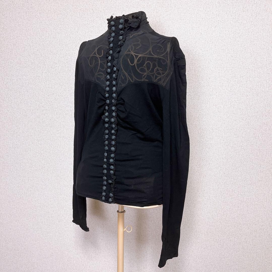 Max Mara シルク シフォン シアー ボタン ブラウス ハイネック 黒 收藏