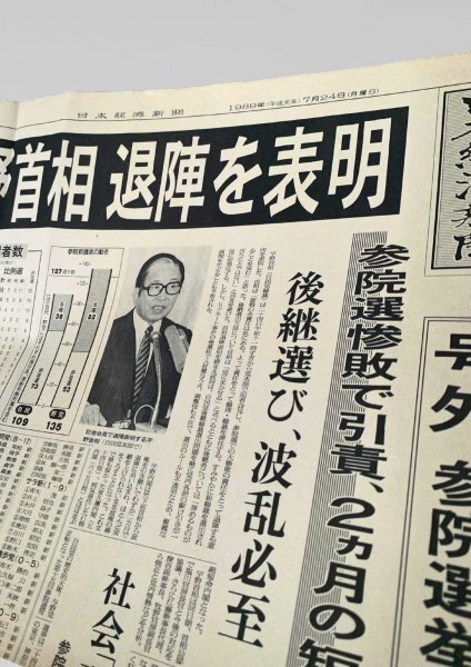 日本経済新聞 1989年7月24日号外 竹下登 退陣表明 参院選敗北 後継選び