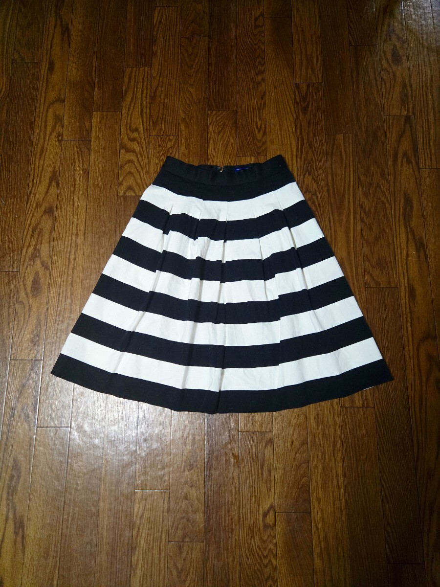 エムズグレイシー スカート 黒白 ボーダー バックリボン カメリアチャーム ウエストゴム ガーリー エレガント 大人可愛い セレブ 收藏