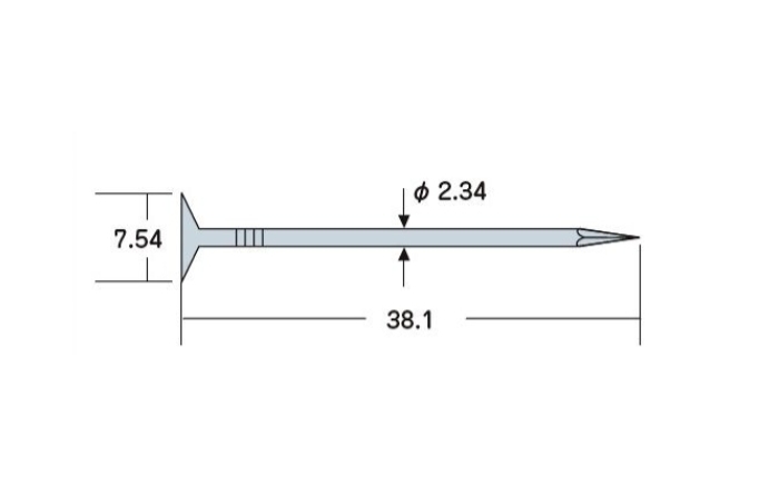 【寸法】線径 2.34 全長 38.1mm 頭径 7.2