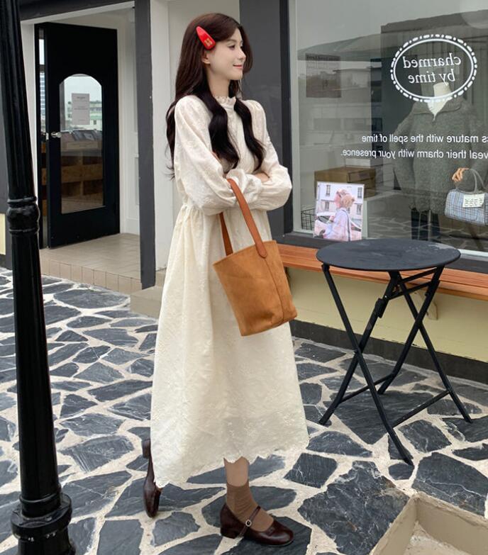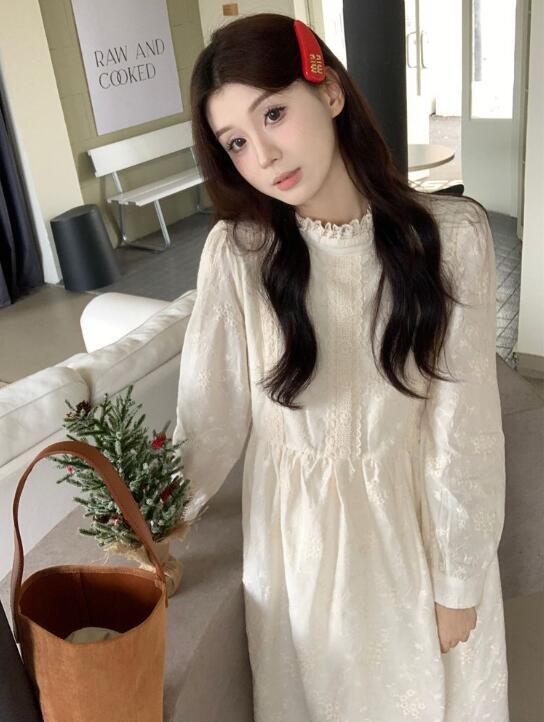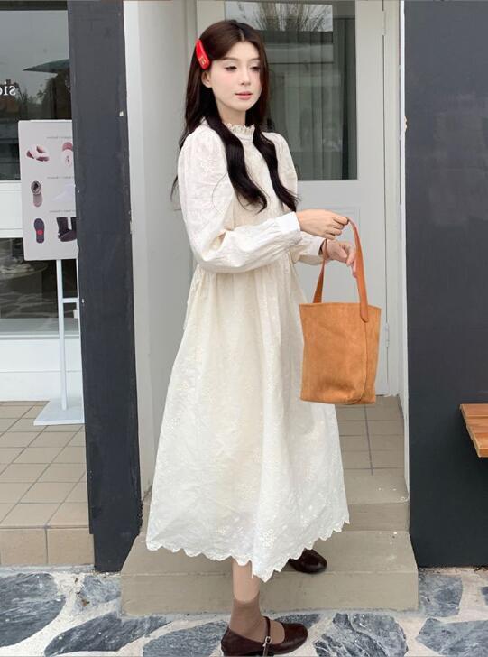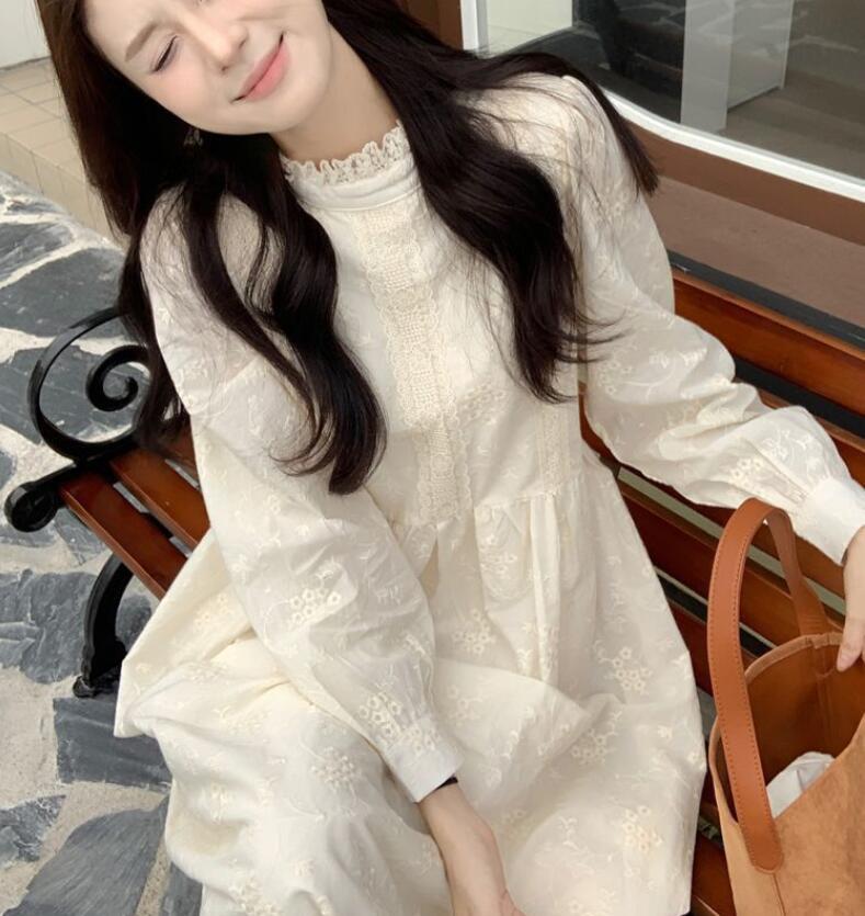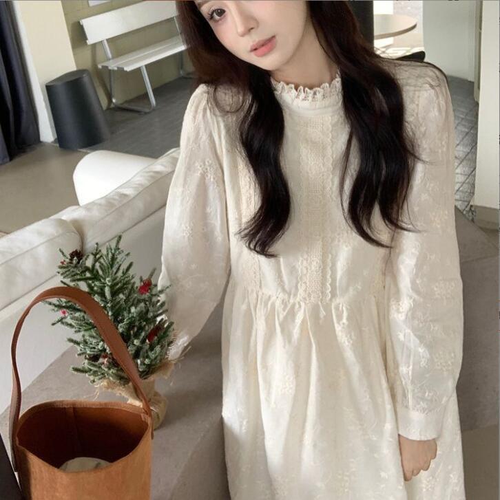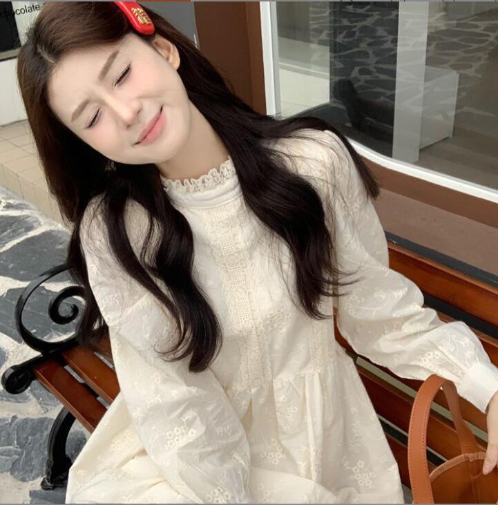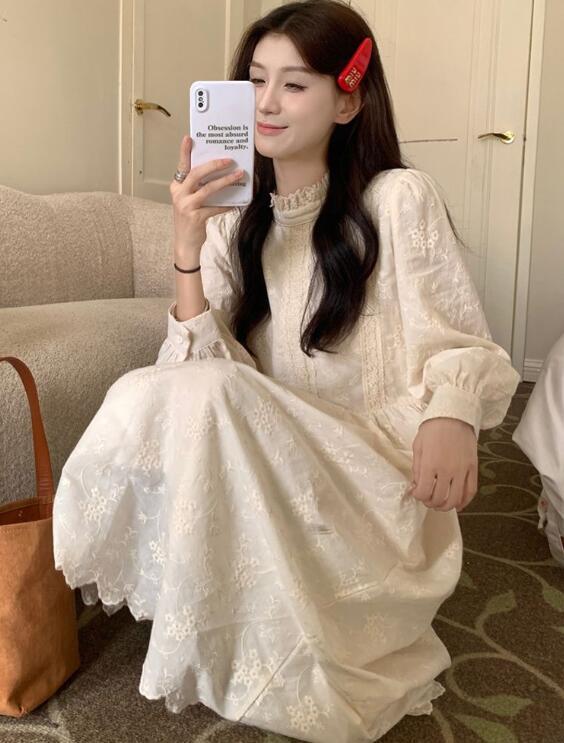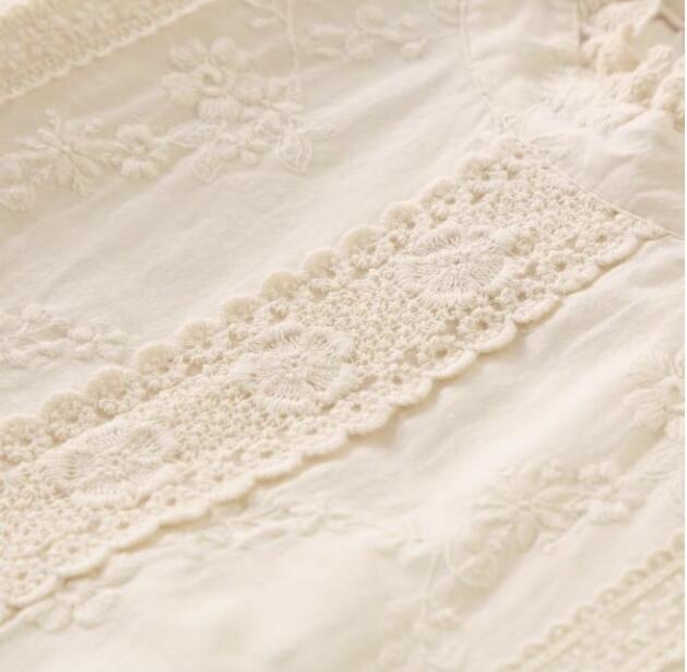 人気品刺花柄 レース ワンピース 綿100% オシャレ 大人可愛 ゆったり チュニック フリーサイズ ナチュラル ふんわり ベージュ色 收藏
