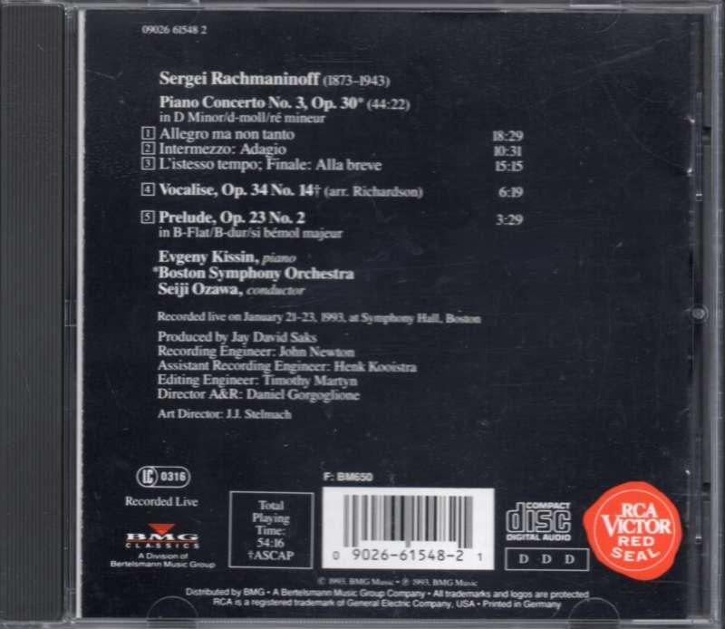 ラフマニノフ:ピアノ協奏曲第3番 他 キーシン(p) 小澤=BSO /L (RCA*09026-61548) 收藏