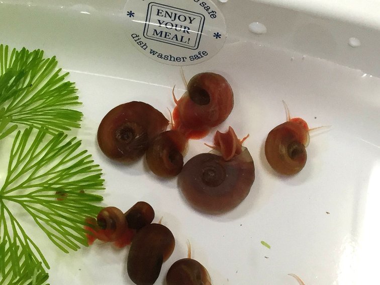 ☆送料無料! レッドラムズホーン5匹+1匹・ウィローモス5g 専用ボックス発送 メダカ水槽に♪ 收藏