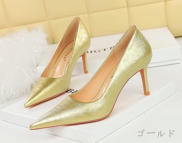 【高品質】全5色 スリッポン ローファー モカシン ピンヒール とんがりトゥ 無地 シンプル 36 ゴールド 收藏