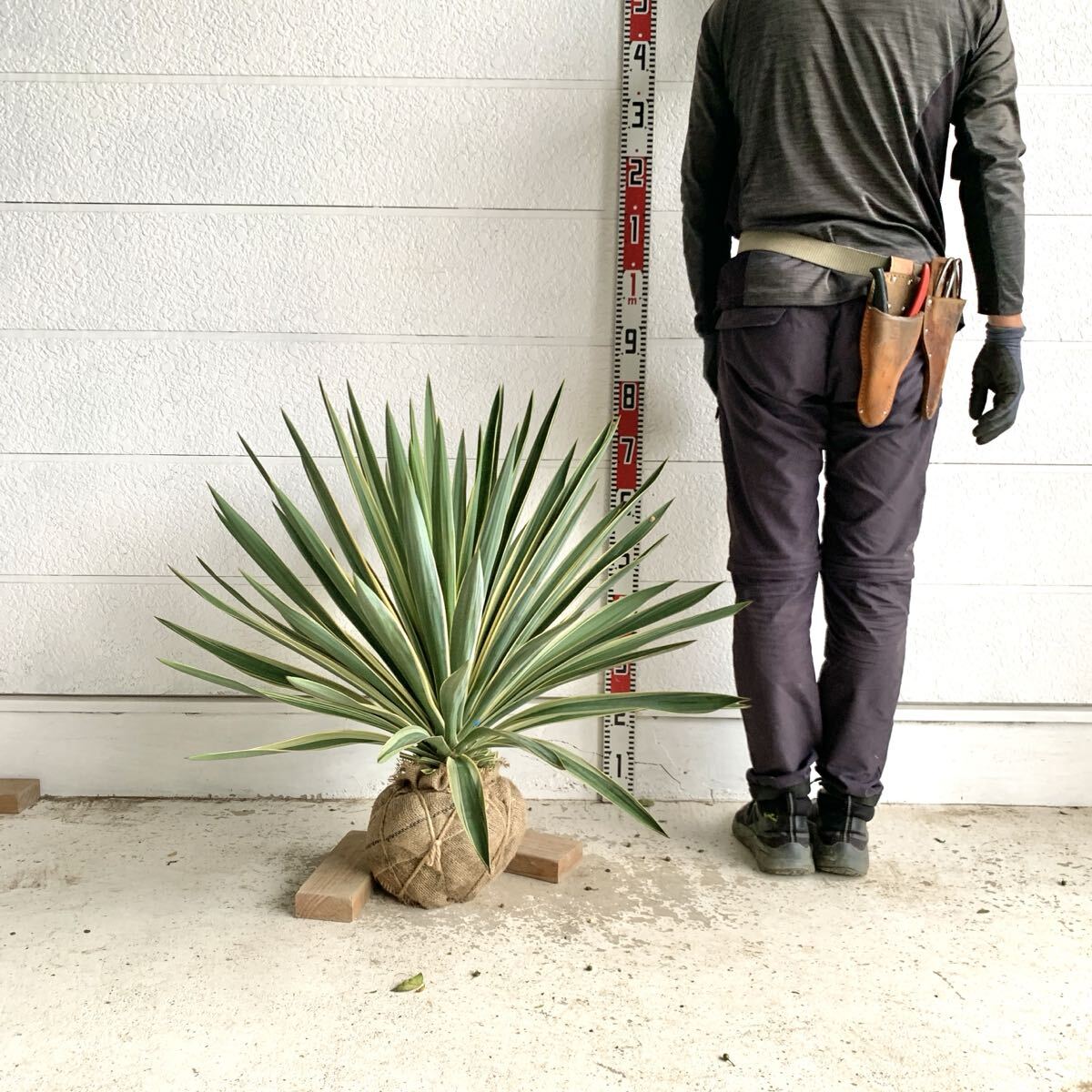 ユッカ・バリエガータは太い幹と上を向いた肉厚のシャープな葉が特徴的。