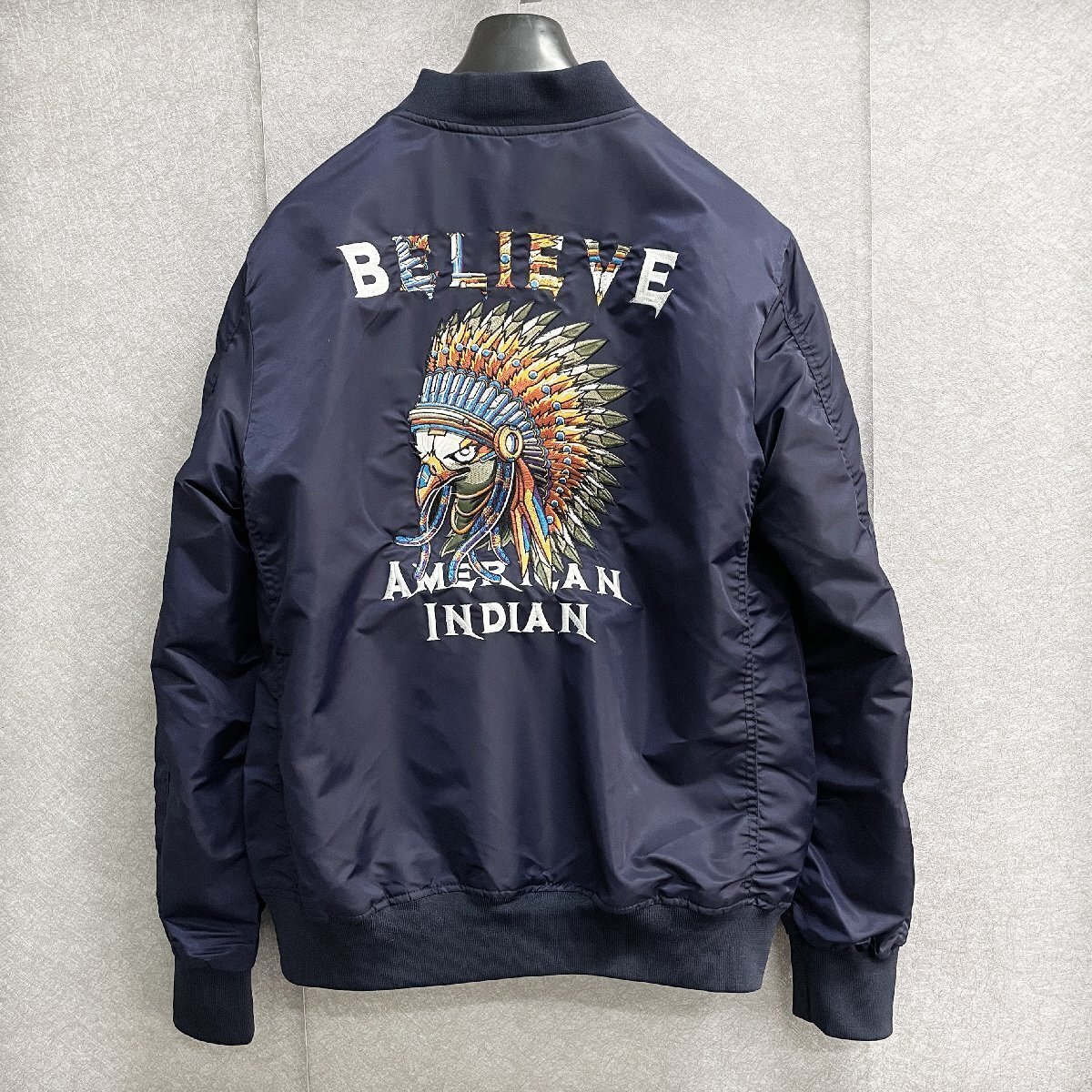 高級・フライトジャケット/MA-1 定価7万◆Emmauela・イタリア・ミラノ発◆薄手 個性 INDIANS 豪華刺繍 USAF*TYPE 2XL/52サイズ 收藏