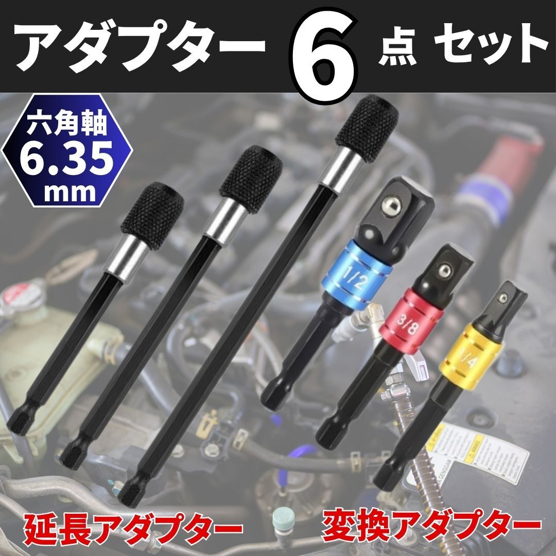 ソケットアダプター 6点 変換 アダプタ 六角軸 インパクト ドライバー ビット ホルダー 延長6角軸 電動 ドリル 工具DIY作業 アタッチメント 收藏