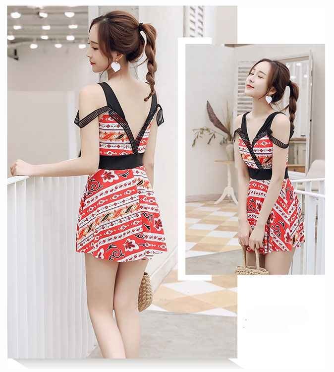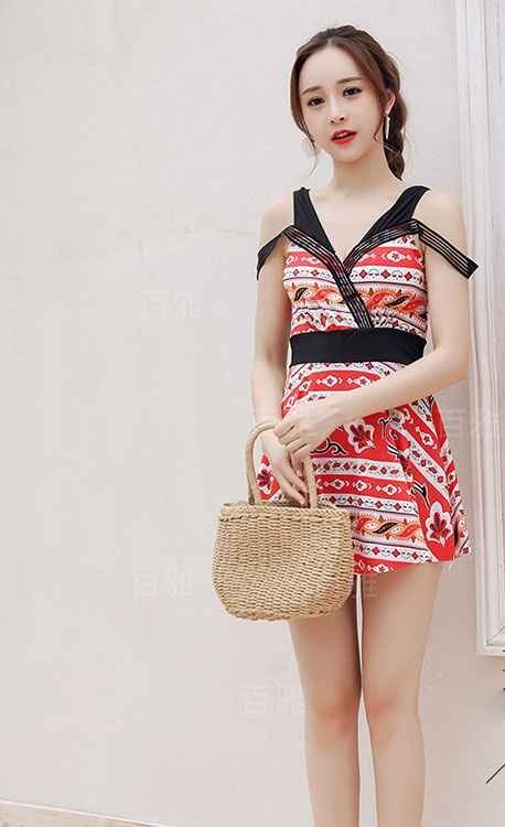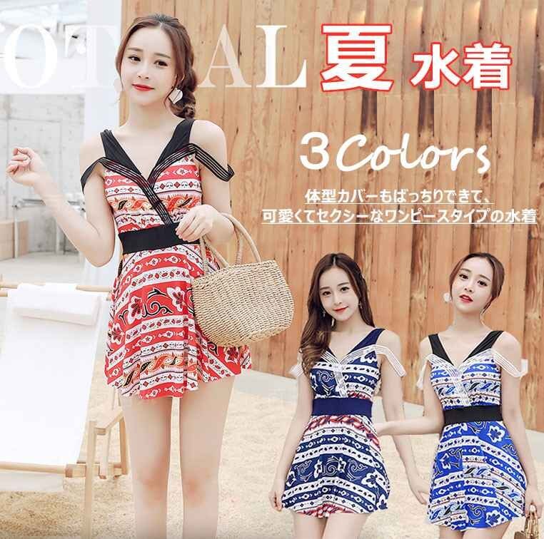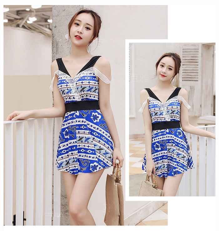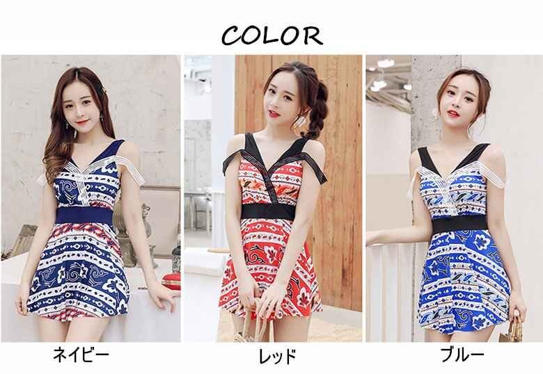 体型カバー ワンピース セクシー オールインワ ワイヤーなし エスニック柄 ショートパンツ L ブルー 收藏