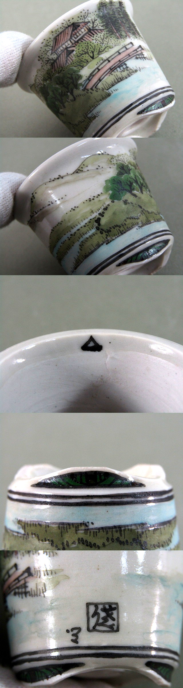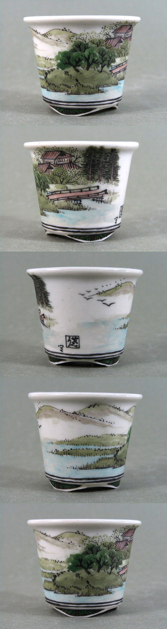 C731 作家もの 色絵 山水図 丸鉢 間口約4.2cm 小品盆栽【説明欄に詳細写真有り】 收藏