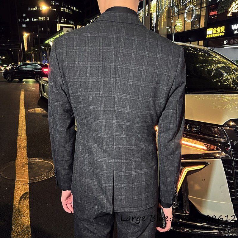 定価6万■新品 スーツセット ビジネススーツ メンズ チェック柄 スリーピース 一つボタンシングルスーツ 三点セット フォーマル グレー 2XL 收藏