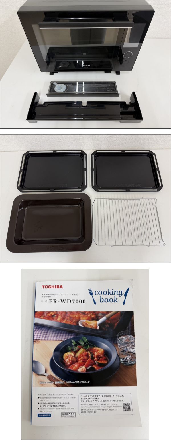 ▲営NA010-170 TOSHIBA 東芝 過熱水蒸気オーブンレンジ 家庭用 / ER-WD7000(K) / 2022年製 / 別冊料理集付き / 動作確認済み / o 收藏