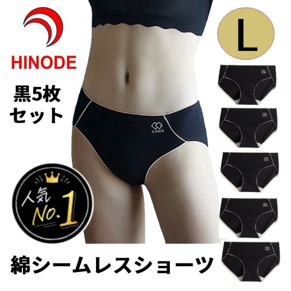 L 黒色5枚セット 綿シームレスショーツ コットン レディース 履き心地 FS-5L-BLA