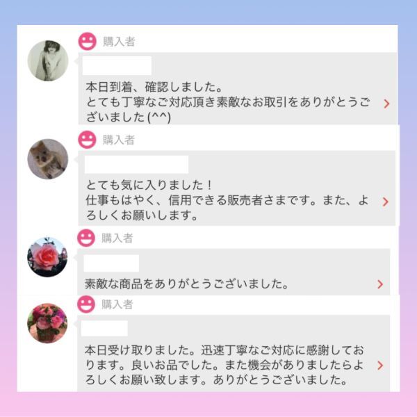 受け取り評価前に取引メッセージよりご連絡ください。誠意を持って対応いたします。
