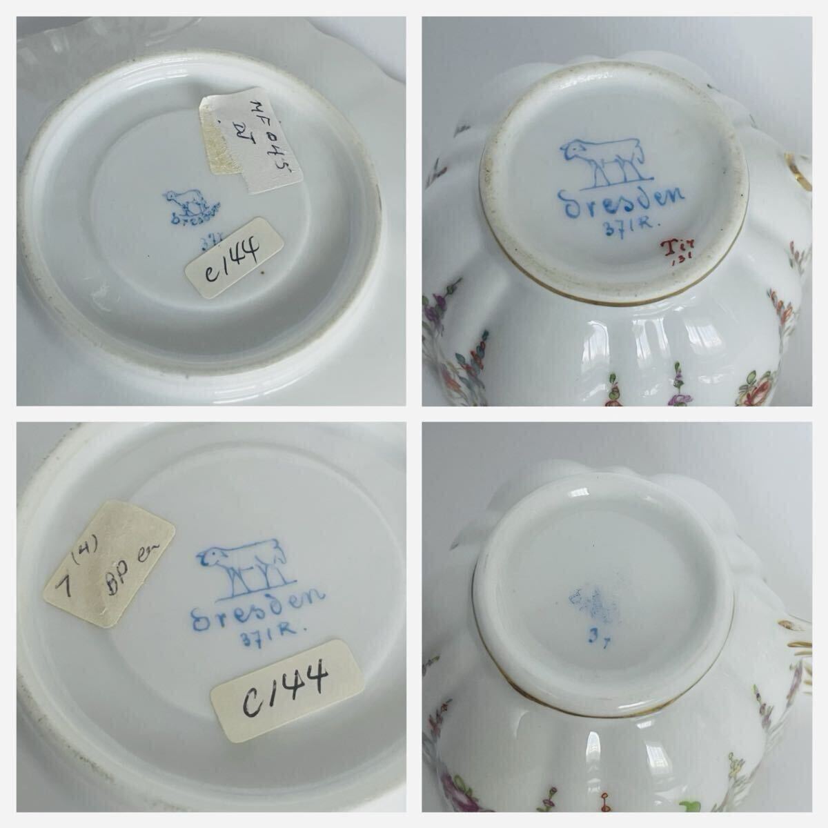【未使用・長期保管・外商購入】ドレスデン Dresden カップ&ソーサー ペア 花文 金彩 羊マーク 外商布張り箱付 C144 收藏