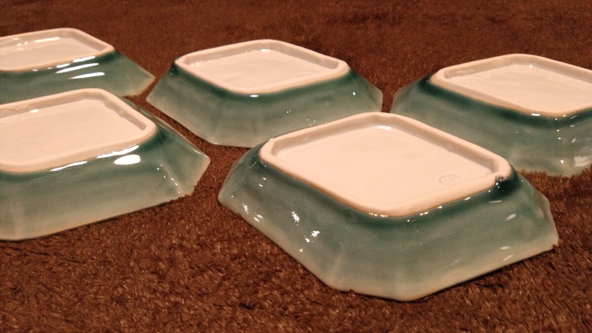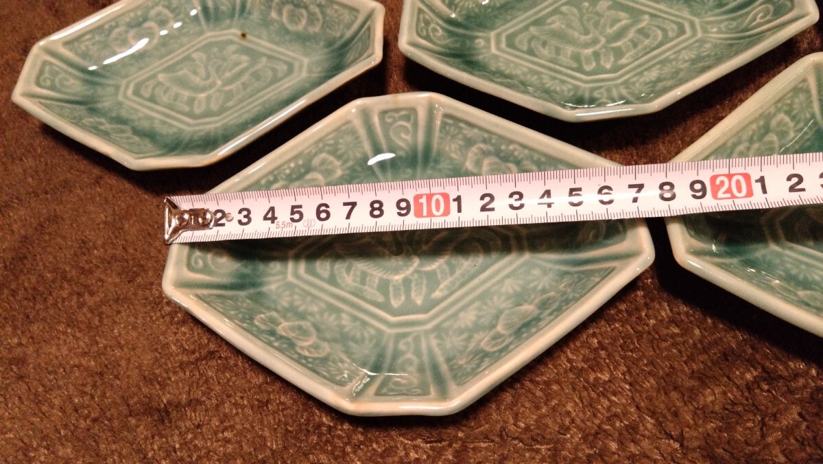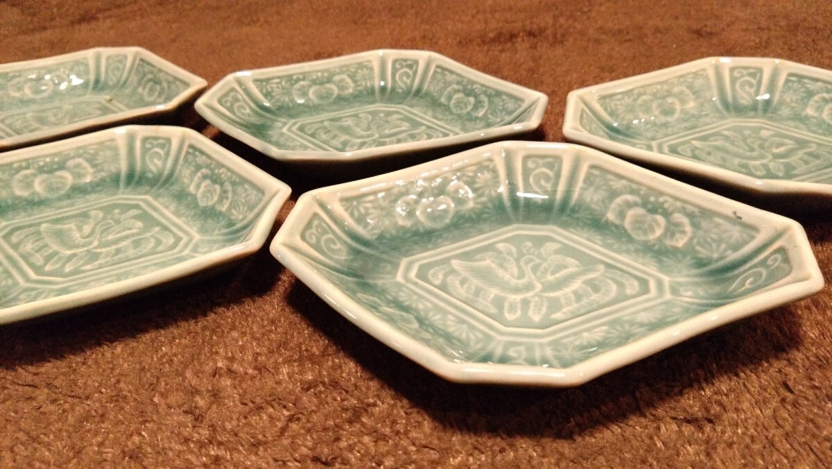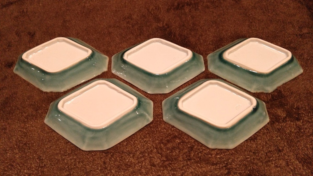 李朝 青磁 鳳凰 陽刻 菱形皿 菓子皿 蔵出し 5客