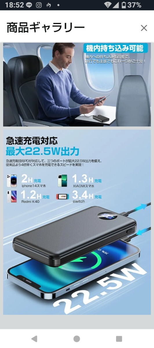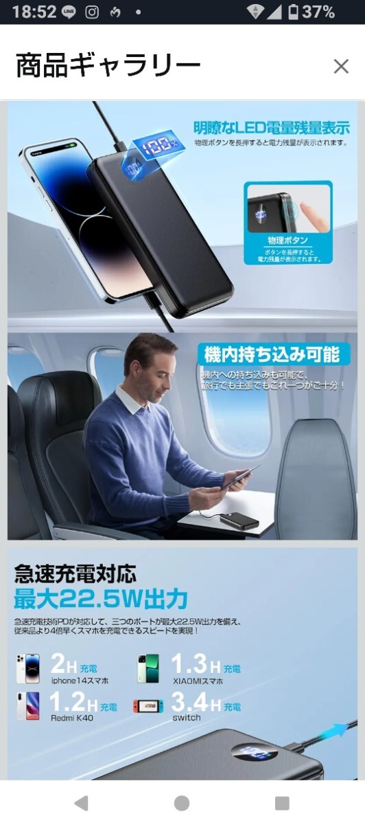 モバイルバッテリー 大容量 【業界新設計・一番薄い】モバイルバッテリー 軽量 小型 タイプc 3台同時充電 携帯充電器 LCDディスプレイ 收藏
