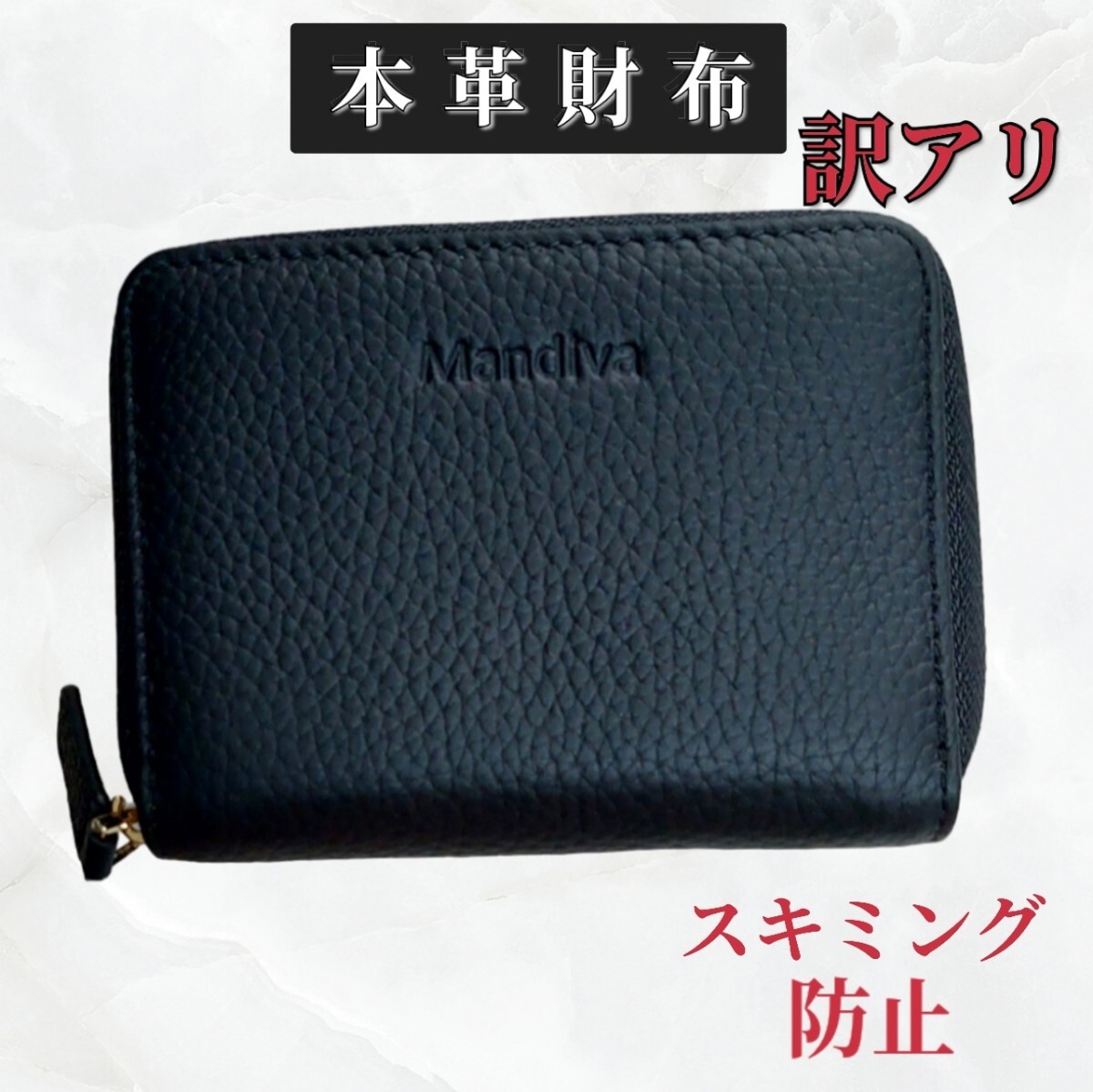 訳アリ 本革財布 二つ折り ミニウォレット スキミング防止 コンパクト ブラック 收藏