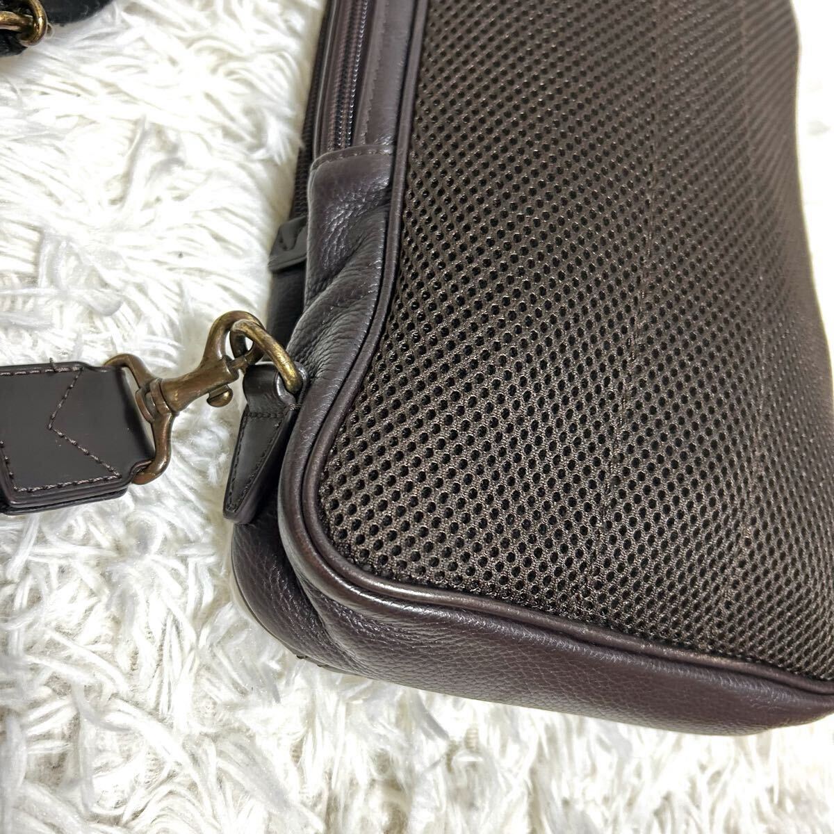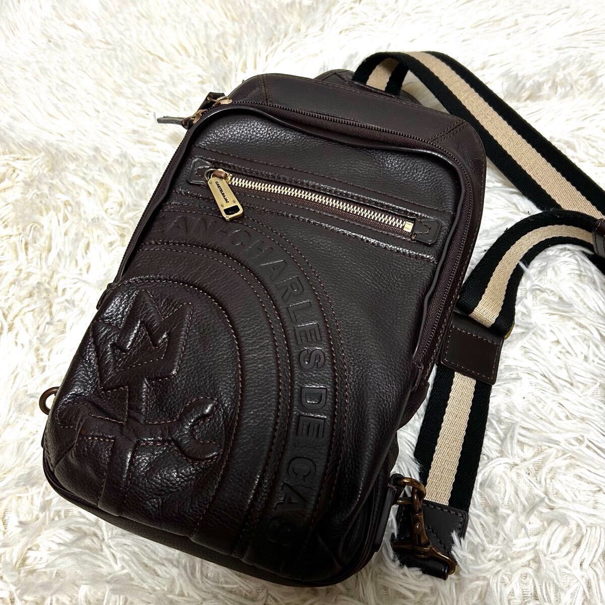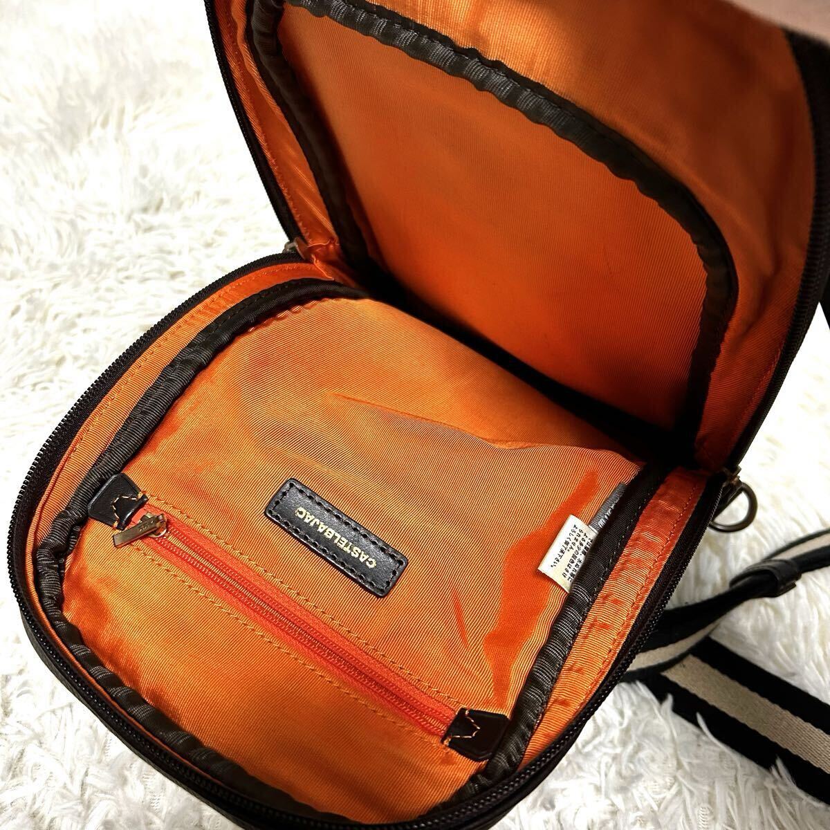 1円 美品ボディバッグ レザー CASTELBAJA カステルバジャック ダークブラウン オレンジ シボ革 デカロゴ入り ショルダーバッグ 焦茶色 收藏