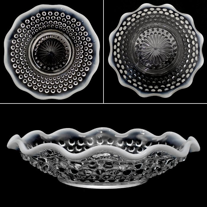 アンカーホッキング(Anchor Hocking) デザートボウル 2枚セット ムーンストーン ホブネイル フリル 波形 ガラス クリア ファイヤーキング 收藏