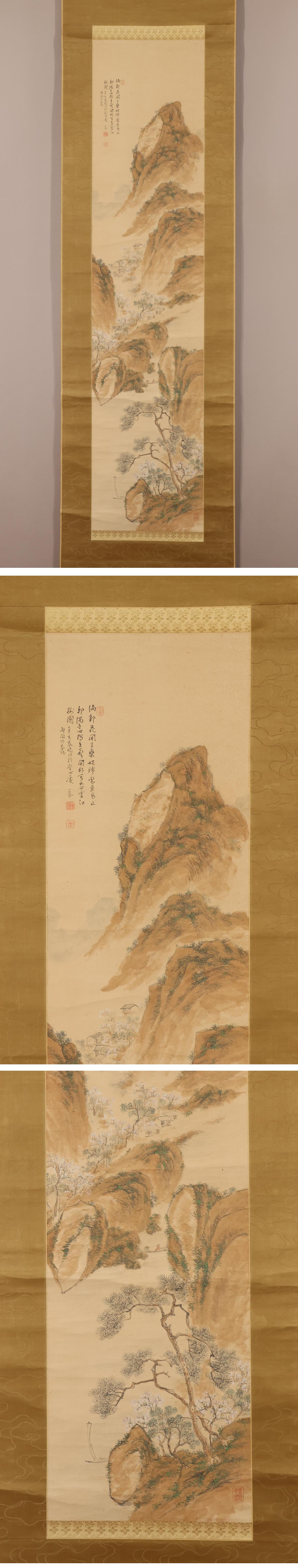 【真作】平野五岳◆春景山水図◆鑑定箱◆師:田能村竹田◆大分県◆肉筆◆紙本◆掛軸◆x102 收藏