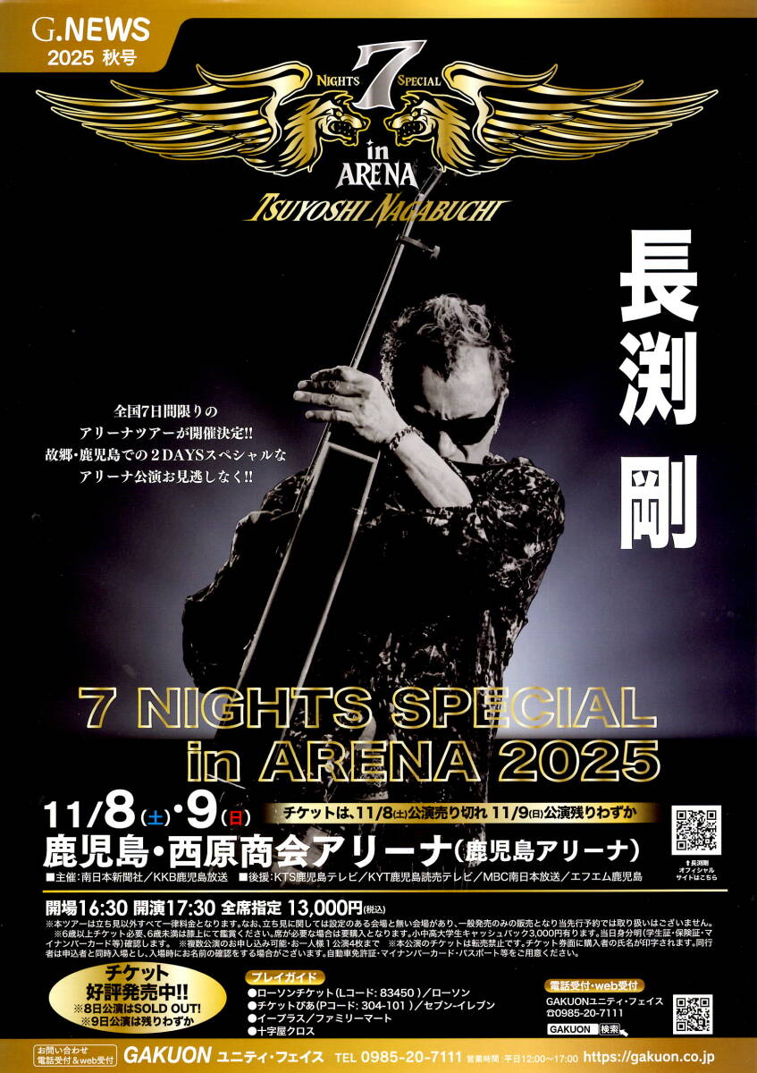 送料無料 5部 長渕剛 7 NIGHTS SPESIAL in ARENA 2025 鹿児島・西原商会アリーナ ライブ告知チラシ G.NEWS| 出价者 | 信用 | 价格 | 时间 |