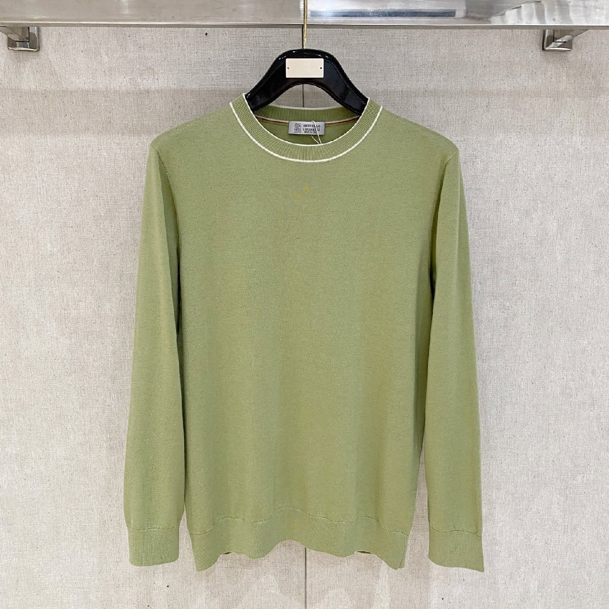 グリーンピースXL★送料無料★ブルネロクチネリ★メンズカシミヤ混クルーネック セーター,ホワイトライン,ビジネスカジュアル,長袖 收藏