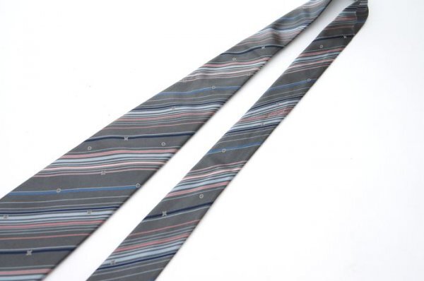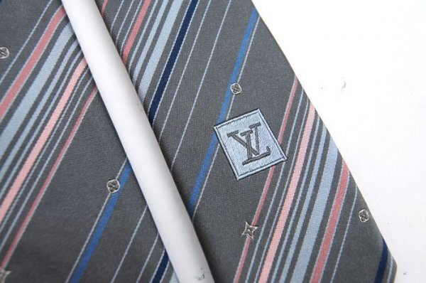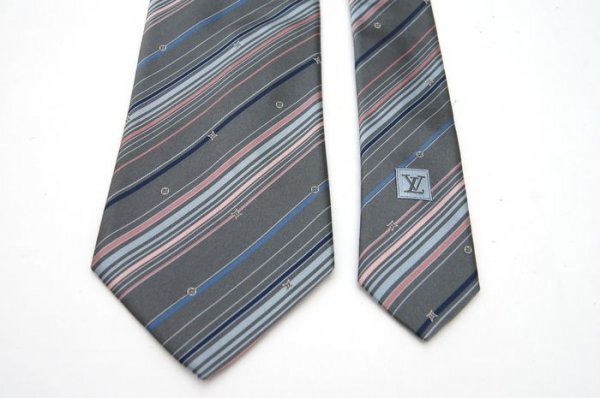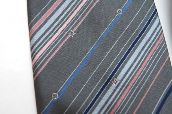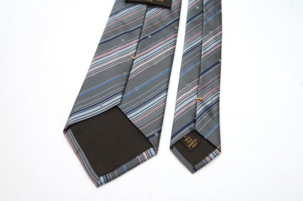 【使用わずか】 ルイヴィトン Louis Vuitton ネクタイ モノグラム LV ロゴ グレー ストライプ シルク イタリア製 定価約4万 C63 收藏
