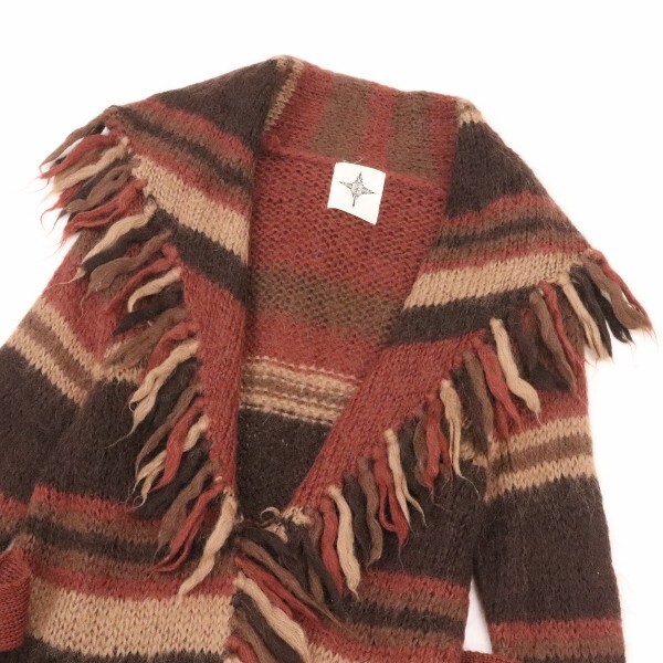 | 【KA418】美品◆NINE ナイン ウエストベルト付 モヘヤ混 ニット フリンジ カーディガン M | |