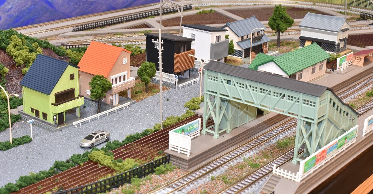 【SAZAN】鉄道ジオラマレイアウト複線※120x60cm 昭和の駅と平成の街並み (2線ヤード)★Q 收藏