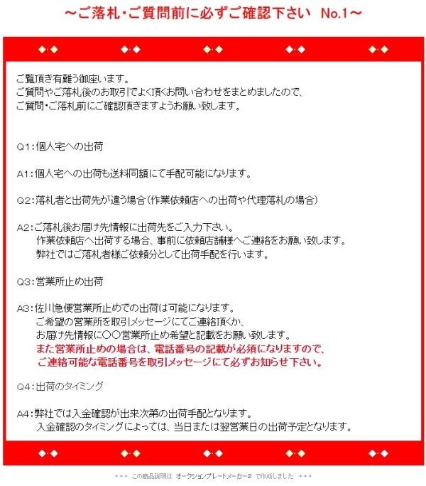 | 表示はタイヤ4本の価格です。 送料別途かかります。下記をご覧下さい。 お支払い金額は、商品代+送料=合計 です。 別途、お支払いに伴う手数料はご負担お願い致します。 | ||||||||||||||||||||