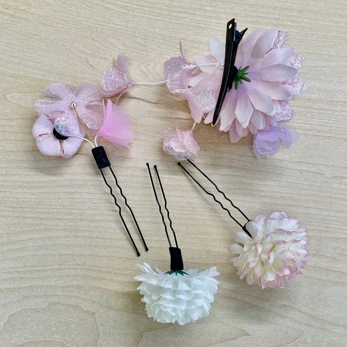 ヘアドレス 髪飾り 和装 着物 浴衣 袴 祭り 卒業式 成人式 ピンク 桃 かんざし 七五三 結婚式 ヘアアクセサリー 收藏
