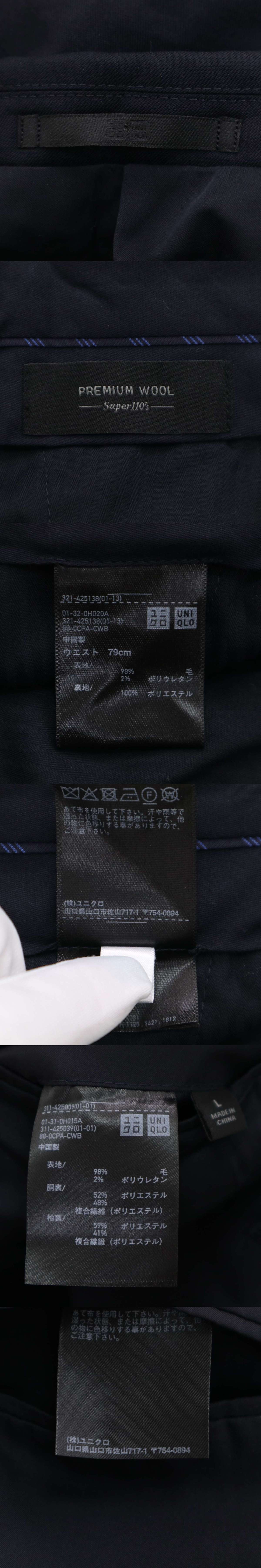 UNIQLO ユニクロ 通年 Super110s★ ストレッチ プレミアム ウール セットアップ スーツ Sz.L メンズ ネイビー ビジネス 收藏