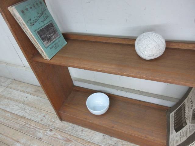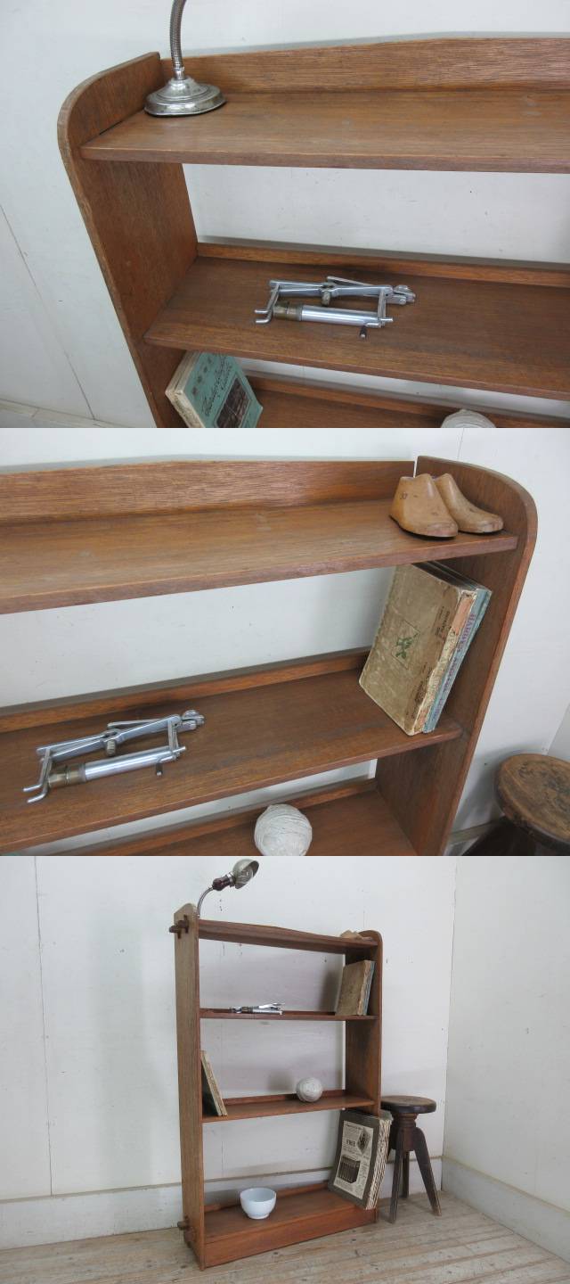 古い木味の楔どめ3段本棚G132 アンティーク家具収納棚陳列棚ブックシェルフ本箱書棚書類入れ店舗什器カフェ什器無垢材古家具 收藏