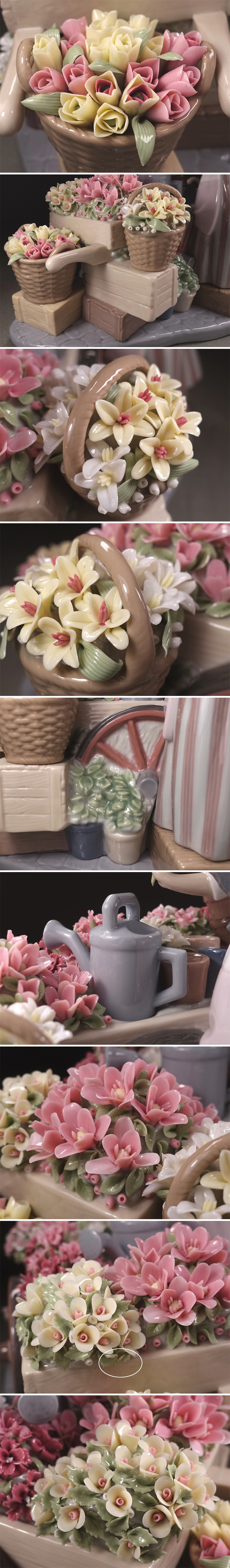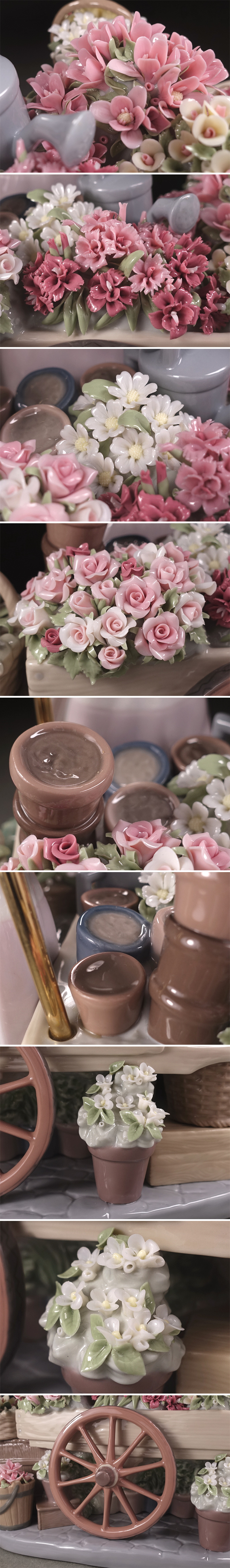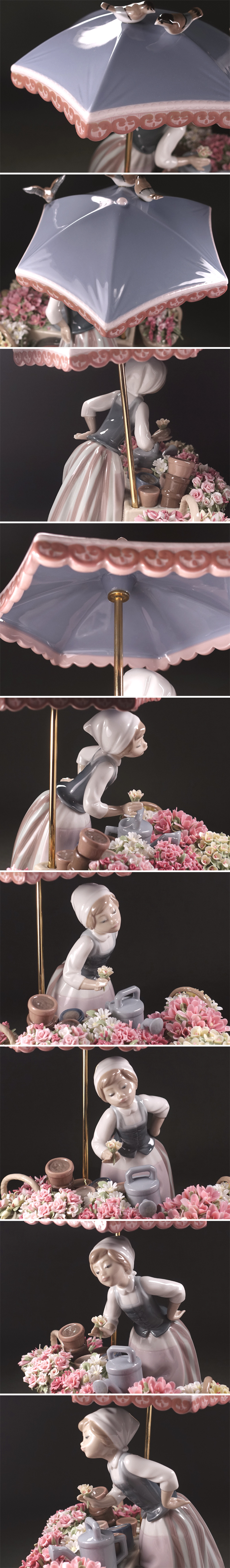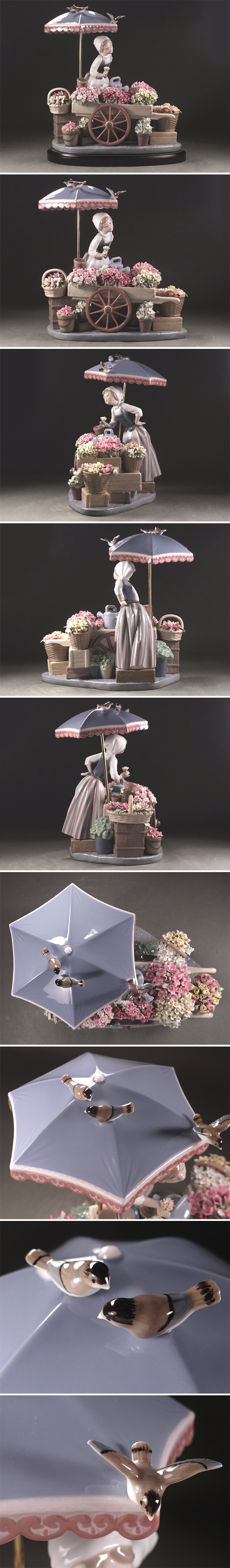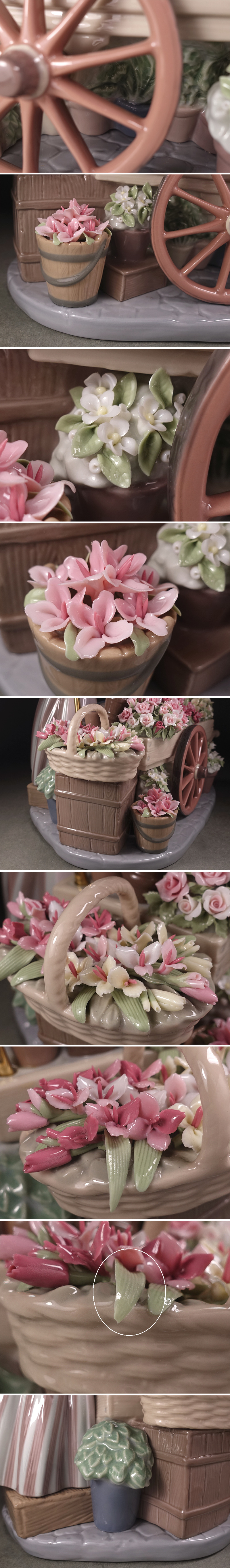 ∇花∇【リヤドロ/LLADRO】 名作磁器人形モデルNo.1454「公園通りの花屋さん」 H27cmの大型 300輪もの繊細な花々 台座・ガラスケース付 收藏