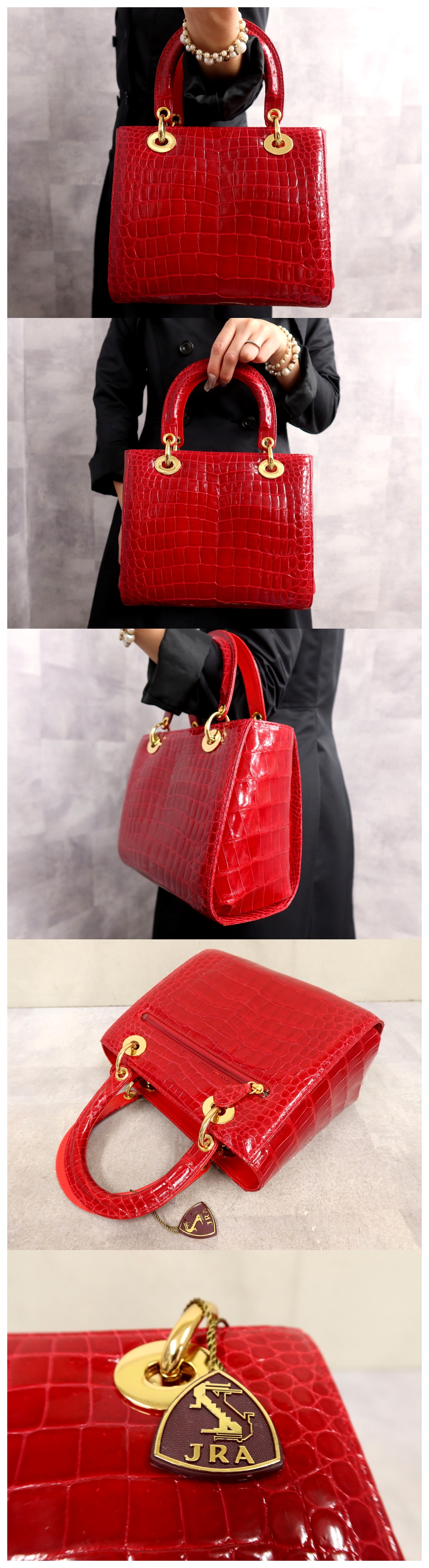 ●超美品●JRA 認定●シャイニング クロコダイル 本 ワニ 革●ハンド バッグ●赤●ゴールド金具●腕掛け●かばん●Js64464 收藏