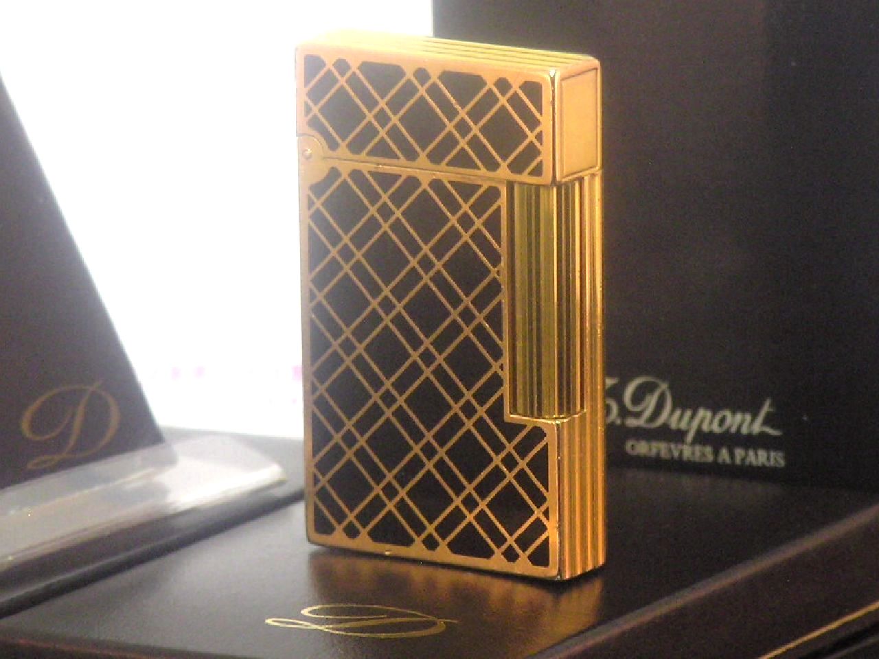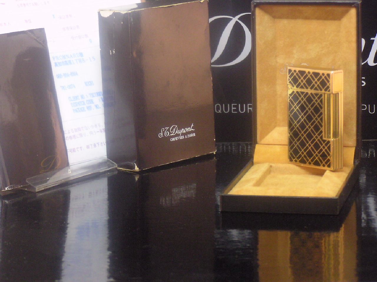 【 細かな傷多い レア ブラック 】S.T.Dupont イエローゴールド アーガイルチェック ブラック ライン2 ガスライター◆デュポン 喫煙グッズ 收藏