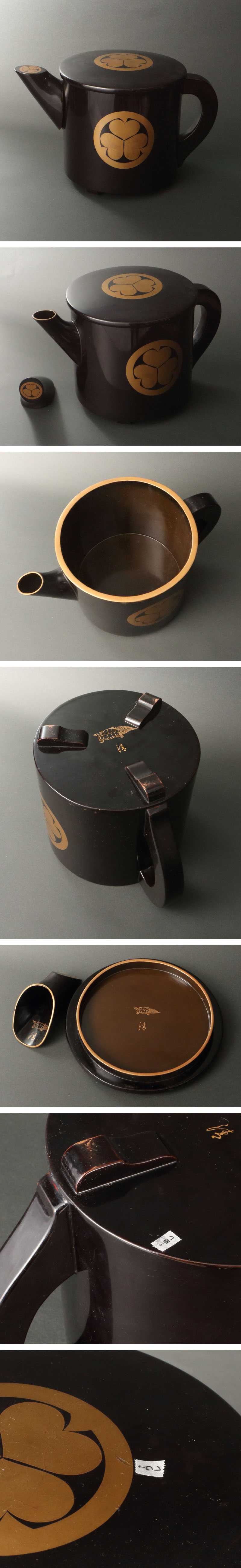 委託HK◇時代 三つ葉葵紋入水注(蓋裏に亀・「清」字入)(茶道具 漆芸 工芸 水差 懐石具 湯次 湯桶 湯斗 練湯 茶事 茶席 湯の子すくい ) 收藏