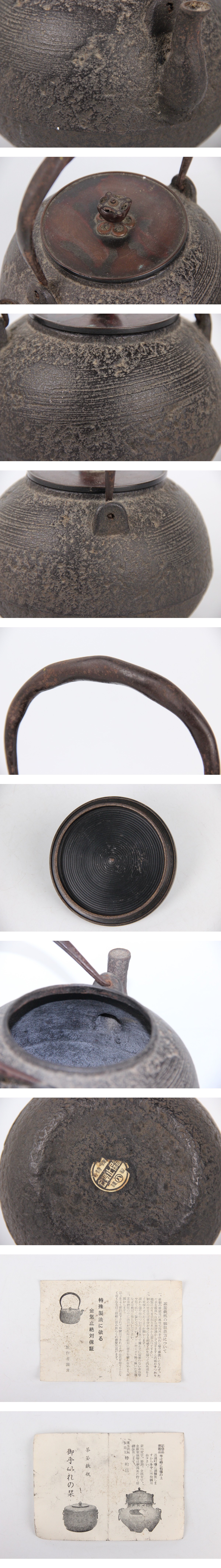 24時間水を張りましたが、水漏れはありませんでした、 のちのご使用による水漏れ・破損は保証できませんのでご承知ください。 サビ・スレ・汚れ・いくつかのアタリがあります。 作成時にできたカタの凹みやスジ・膨らみがあります。 底や中の状態も含めて画像で確認の上、各自の判断でご入札をお願いします。 すべての出品物は骨董品、中古品ですので、 説明しきれない時代物としてのスレや、変色、使用へこみ、使用あたり、小キズ等の欠点はあります。 時代の有るお品で有ることをご理解頂き、詳細画像をご確認のうえご入札をお願い致します。 |