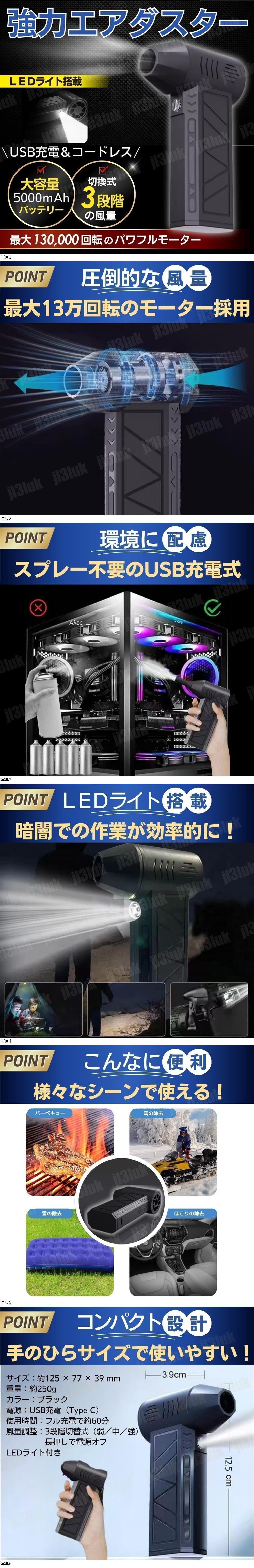 エアダスター 電動 ターボブロワー 大風量 3段階 キーボード 風速 調節 強力 充電式 空気入れ 掃除 車内 送風機 ハイパワー 收藏